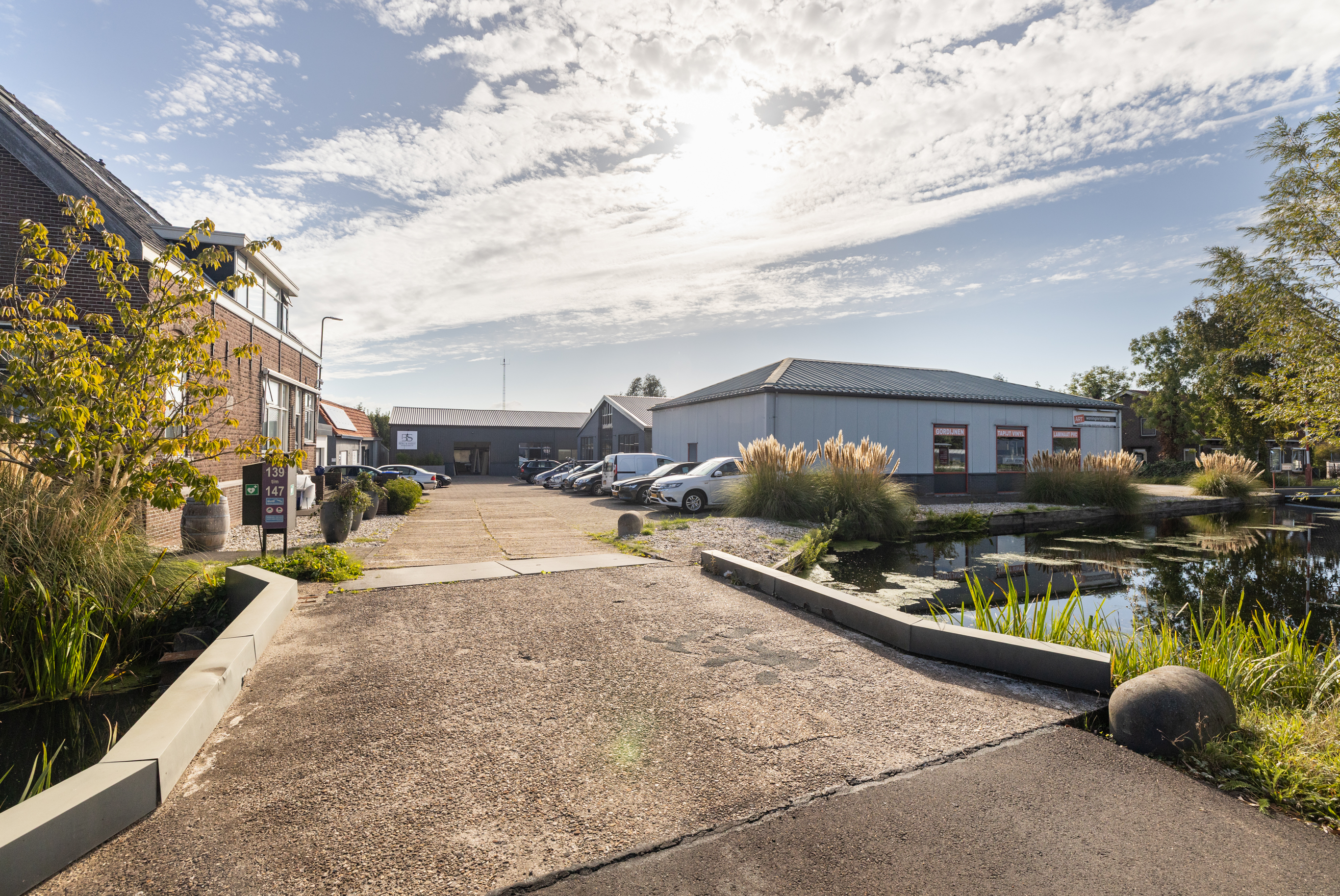 De entree is te bereiken via een gezamenlijke toegangsbrug die wordt gedeeld met andere gebruikers op het terrein. Dit zorgt voor een nette en verzorgde uitstraling van het geheel.