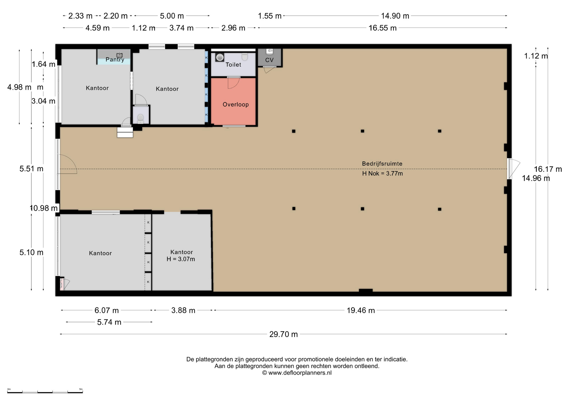 De bedrijfsruimte is voorzien van een glazen pui met daar achter een handige overheaddeur en heeft een vrije hoogte die geschikt is voor diverse bedrijfsactiviteiten, zoals opslag, werkplaats of lichte productie. Voor het pand bevinden zich vier eigen parkeerplaatsen, waardoor laden en lossen eenvoudig kan plaatsvinden.