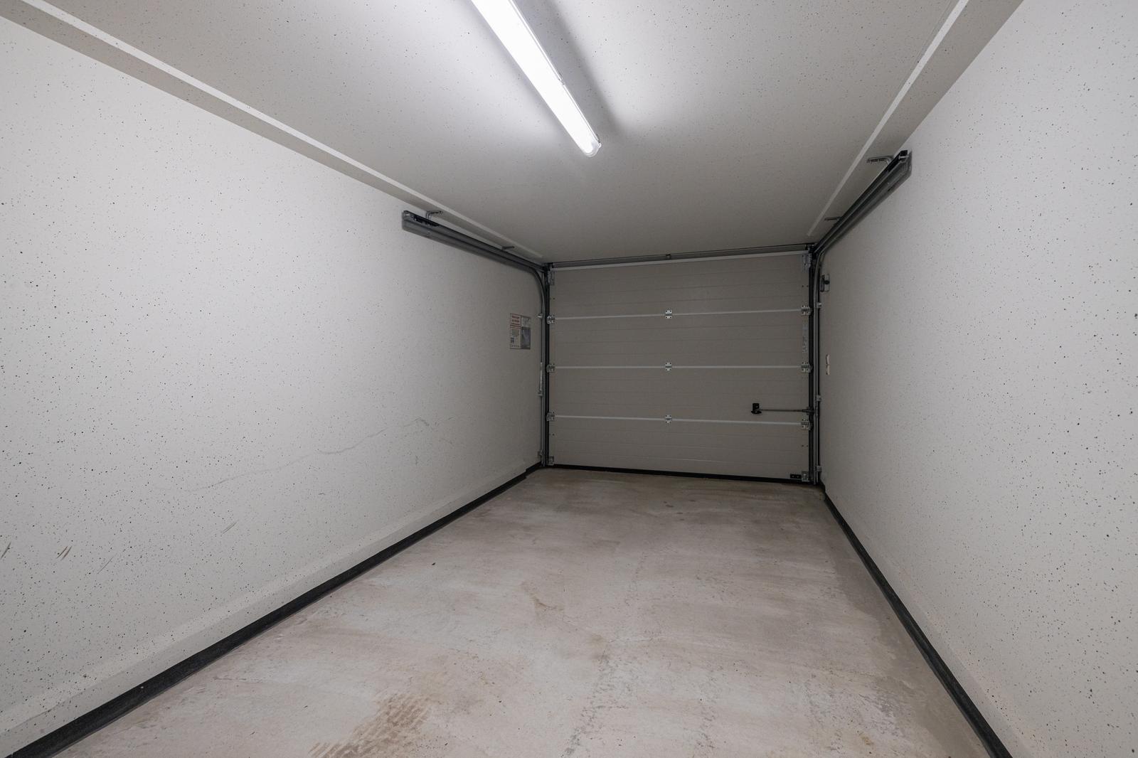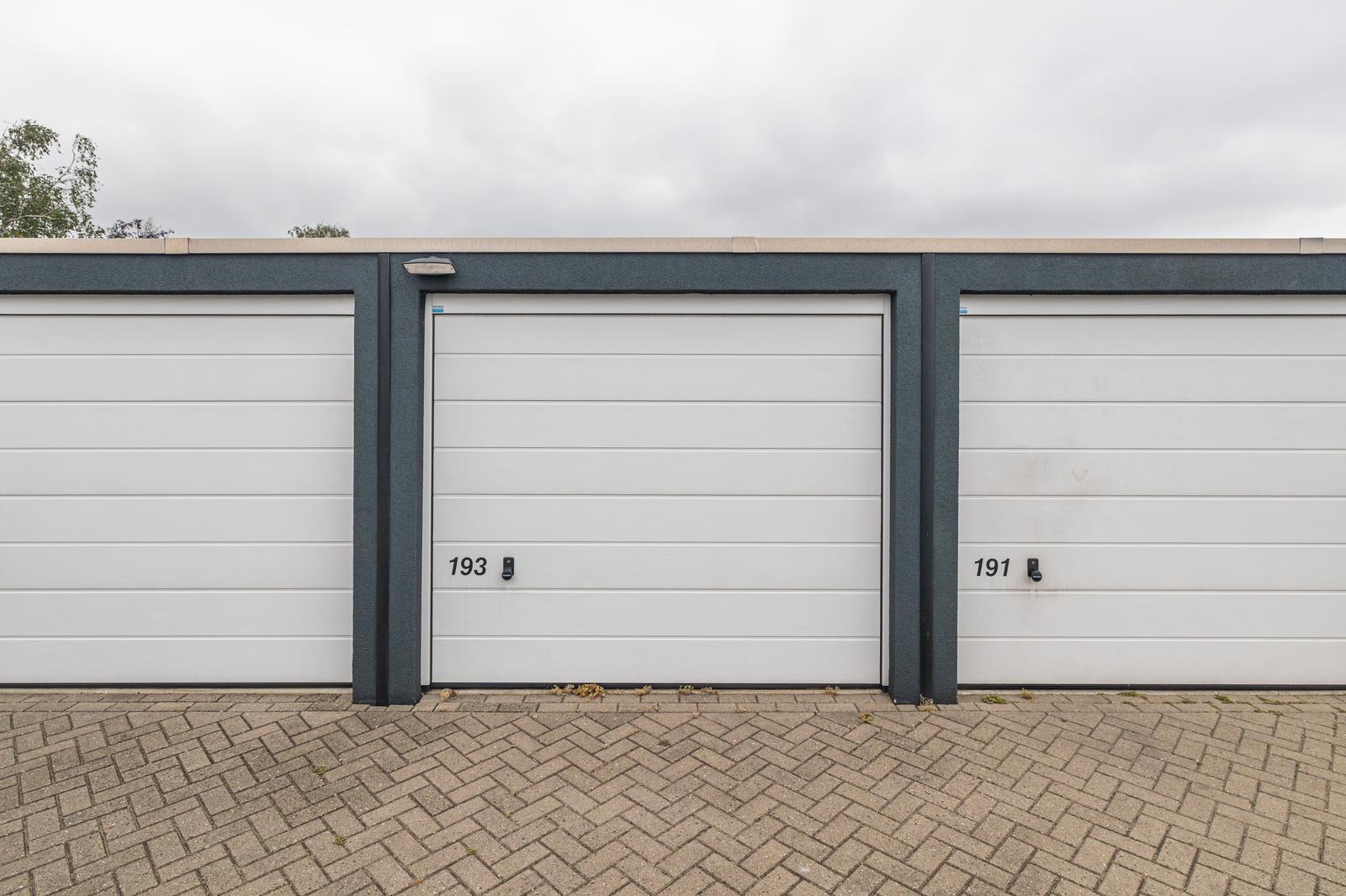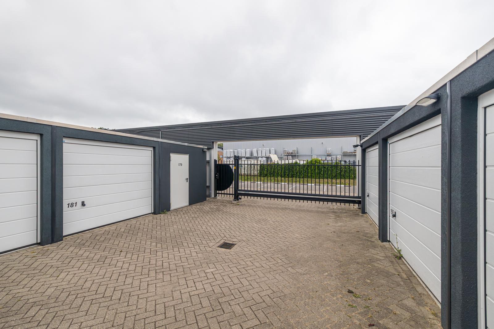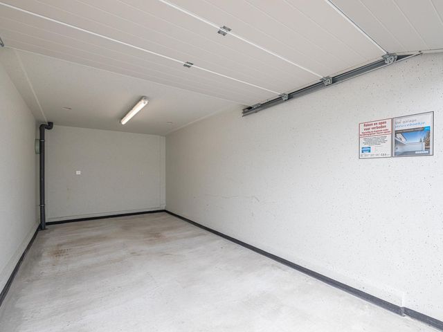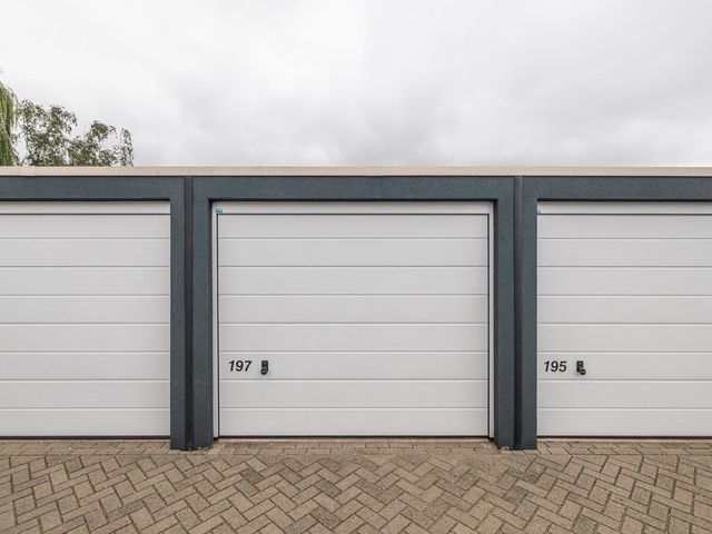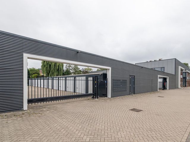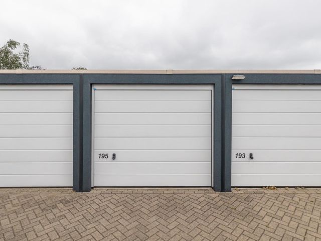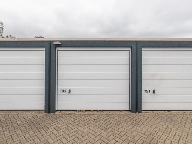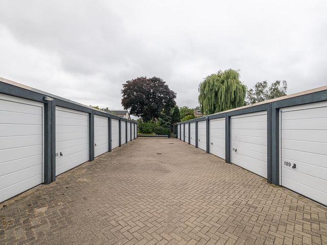 Garage box located on a gated and guarded site in a residential area. Through a sliding gate, the terrain is accessible. The box is approximately 15m2 and is located at the rear of the property. The height of the box measures 2.14 metres and the clearance height is approx. 1.89m. The unit is accessed via a manually operated overhead door. The equipment includes lighting and various wall sockets.