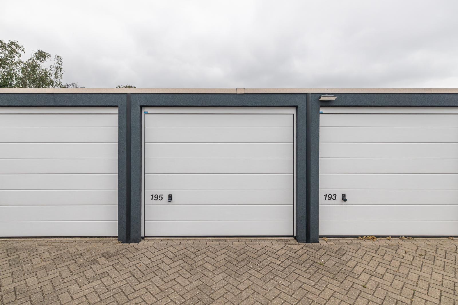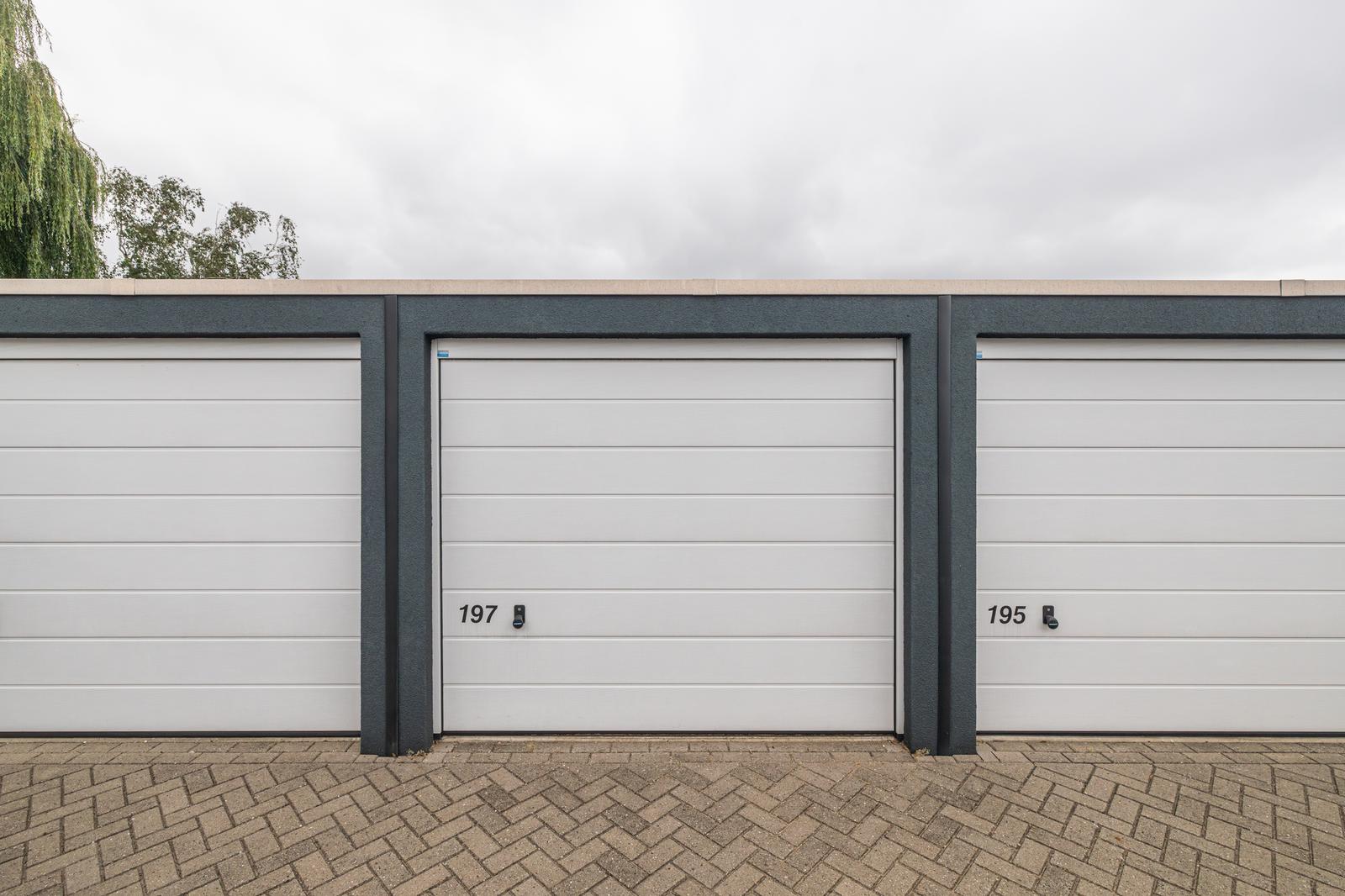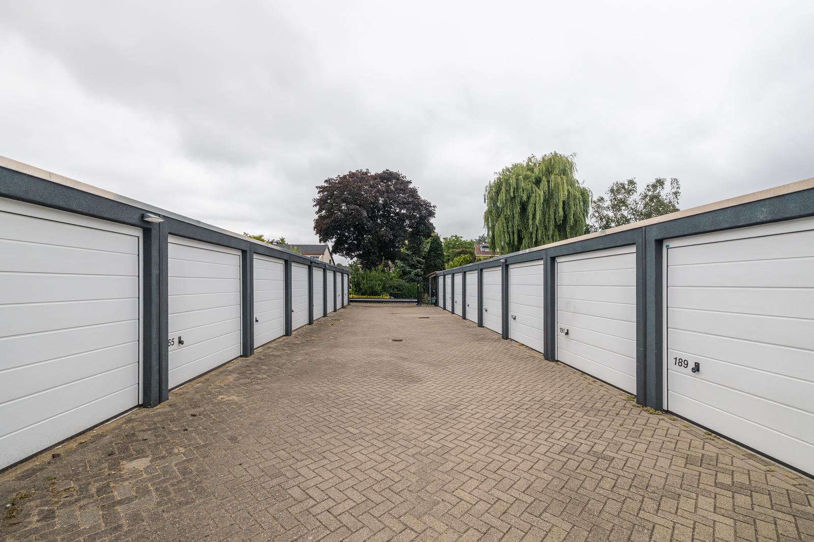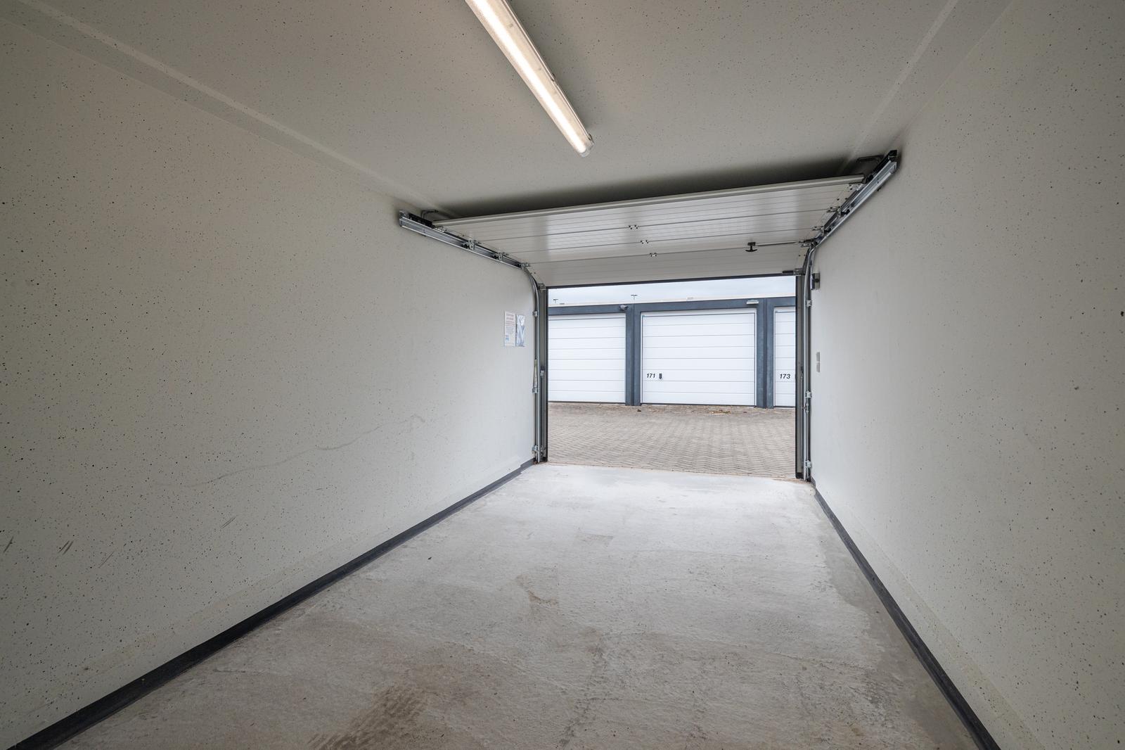 Garage box located on a gated and guarded site in a residential area. Through a sliding gate, the terrain is accessible. The box is approximately 15m2 and is located at the rear of the property. The height of the box measures 2.14 metres and the clearance height is approx. 1.89m. The unit is accessed via a manually operated overhead door. The equipment includes lighting and various wall sockets.