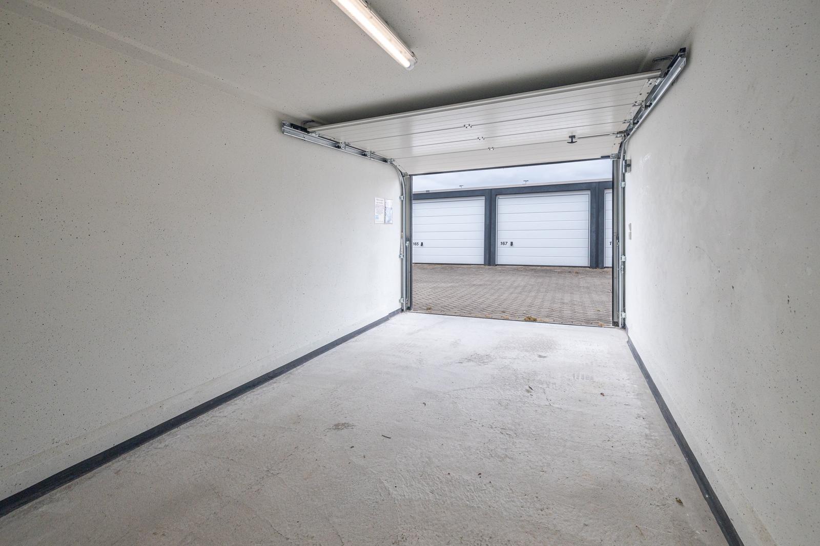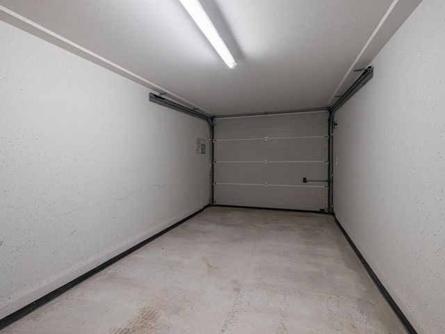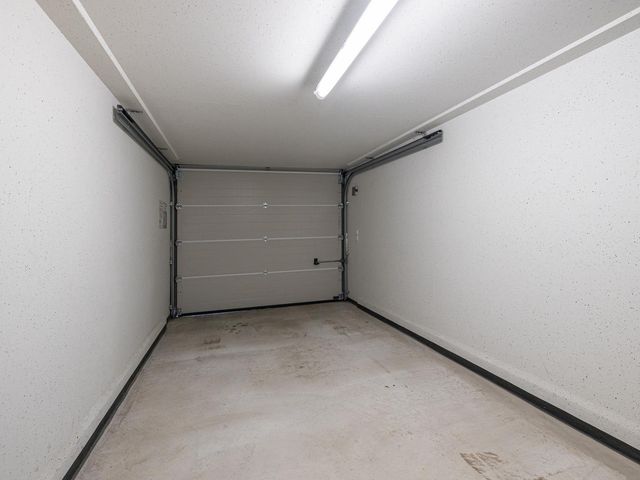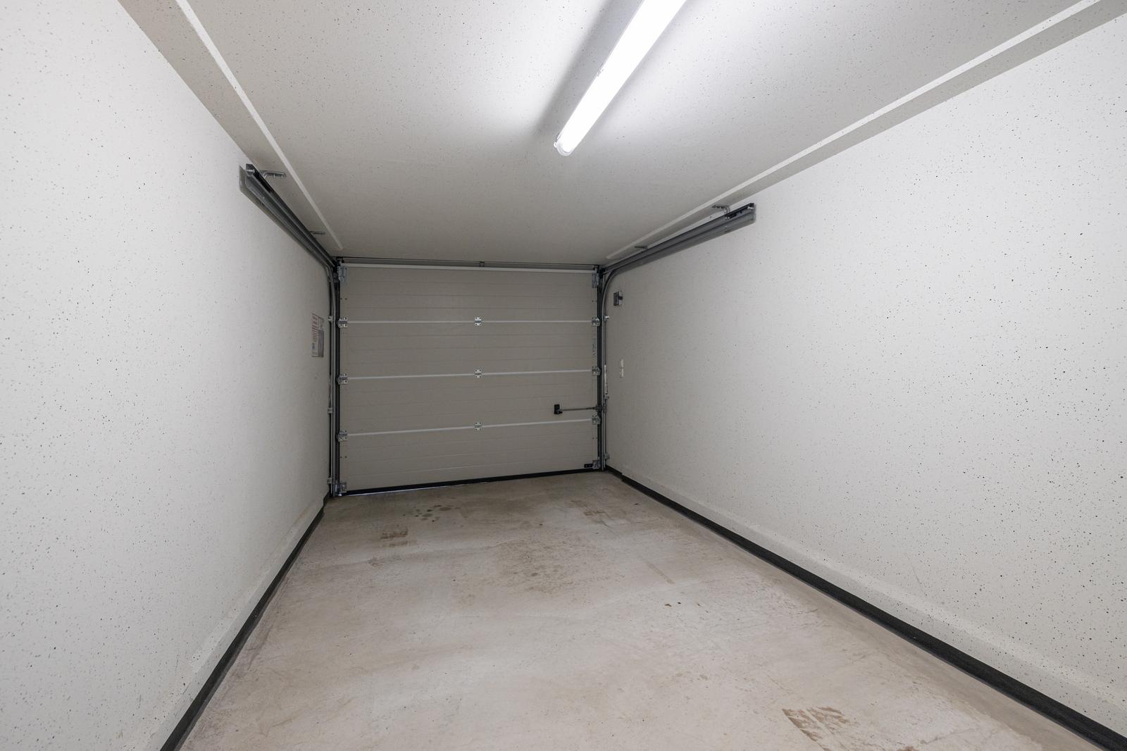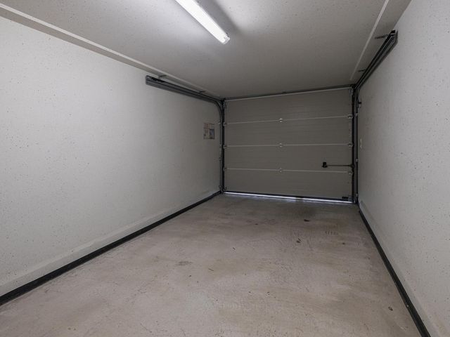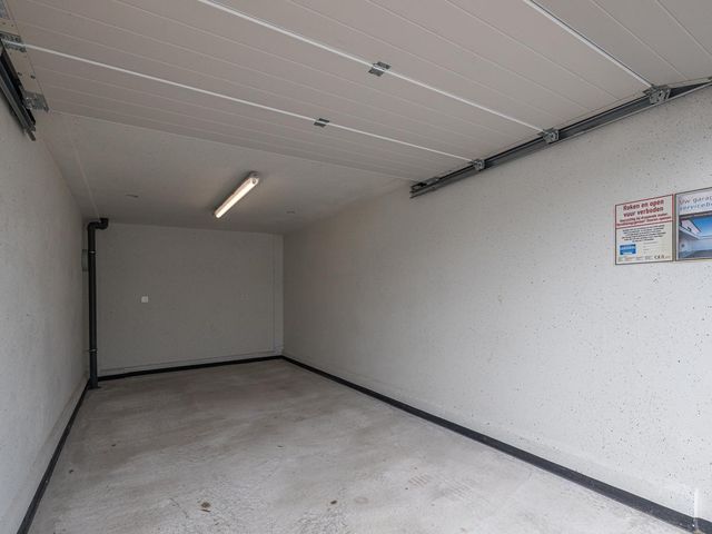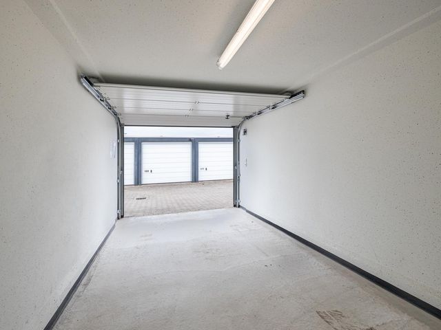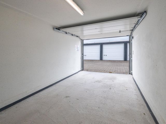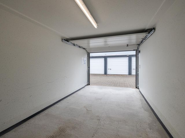 Garage box located on a closed and guarded terrain in a residential area. The area can be accessed via a sliding gate. The box measures approx. 15m2 and is located at the rear of the property. The height of the box measures 2.14 metres and the clearance height is approx. 1.90m. The unit is accessed via a manually operated overhead door. The equipment includes lighting and various wall sockets.