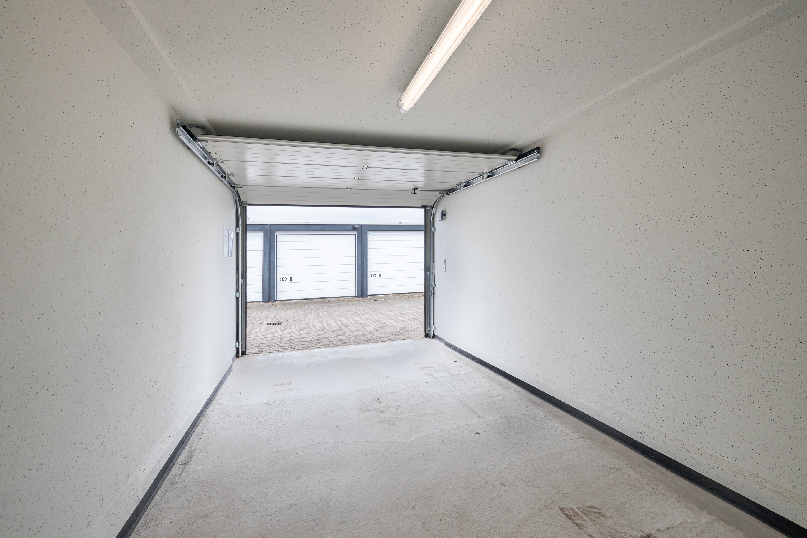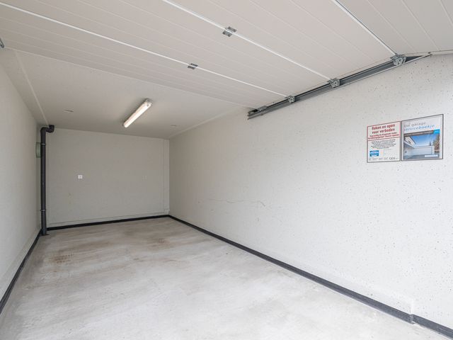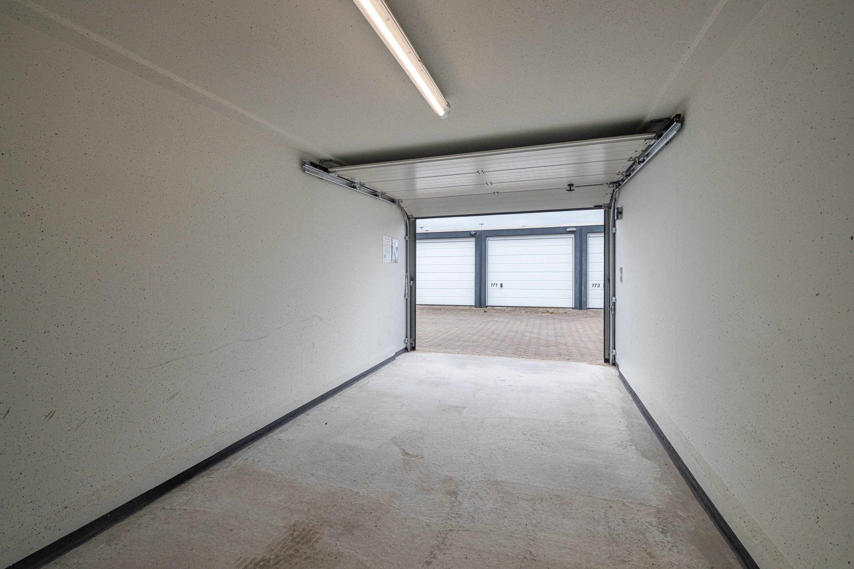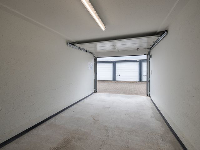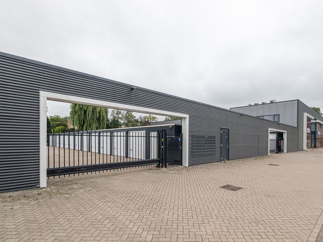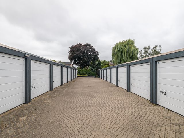 Garagebox gelegen op een afgesloten en bewaakt terrein in een woonwijk. Middels een schuifkhek is het terrein te bereiken. De box is ca. 17m2 BVO (ca. 15m2 VVO) groot en is gelegen aan de achterzijde van het terrein. De hoogte van de box meet 2,14 meter en de doorrijhoogte is ca. 1,89m. De unit is toegankelijk middels een handmatig bediende overheaddeur. De uitvoering bestaat uit verlichting en diverse wandcontactdozen.