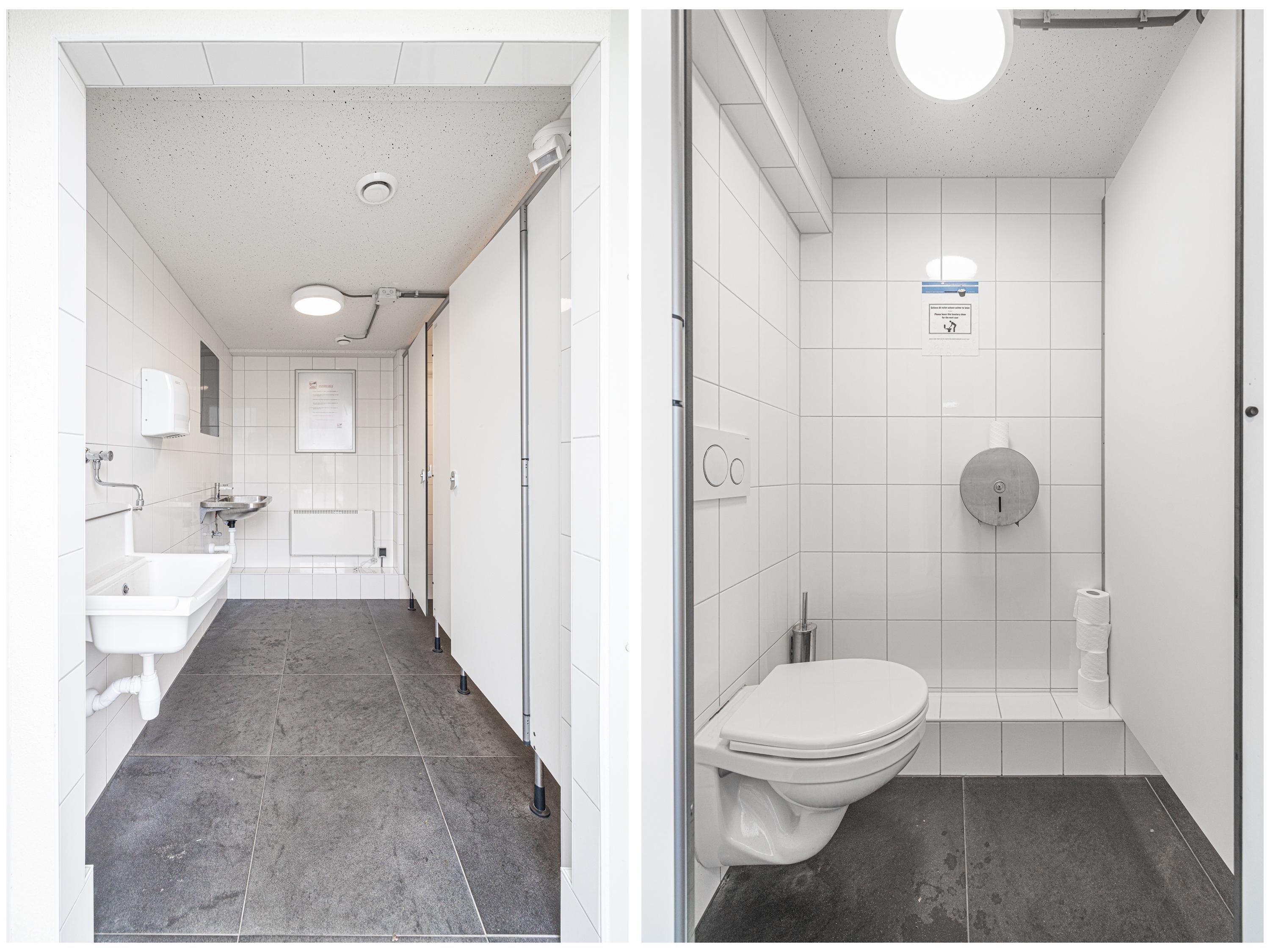 Aan de voorzijde van het complex tref je een afgesloten sanitaire ruimte met twee toiletten, wastafel en een uitstortgootsteen. Tevens zijn er een aantal parkeerplaatsen die behoren bij het complex.