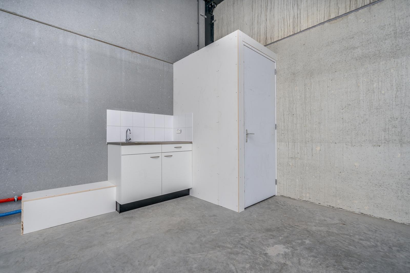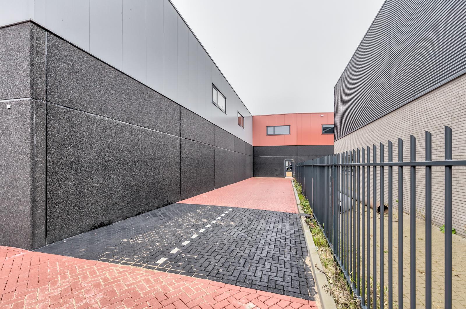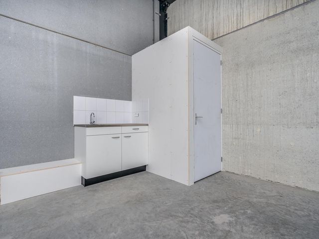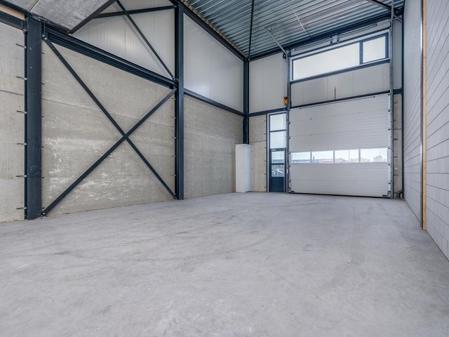 Bedrijfshal van ca. 108m2 met pantry, toilet en trap naar 1e verdieping. De bedrijfshal is te bereiken via een loopdeur en overheaddeur. De overheaddeur is ca. 4 meter hoog en 4 meter breed. Door de hoekligging is er eigen terrein aanwezig.
