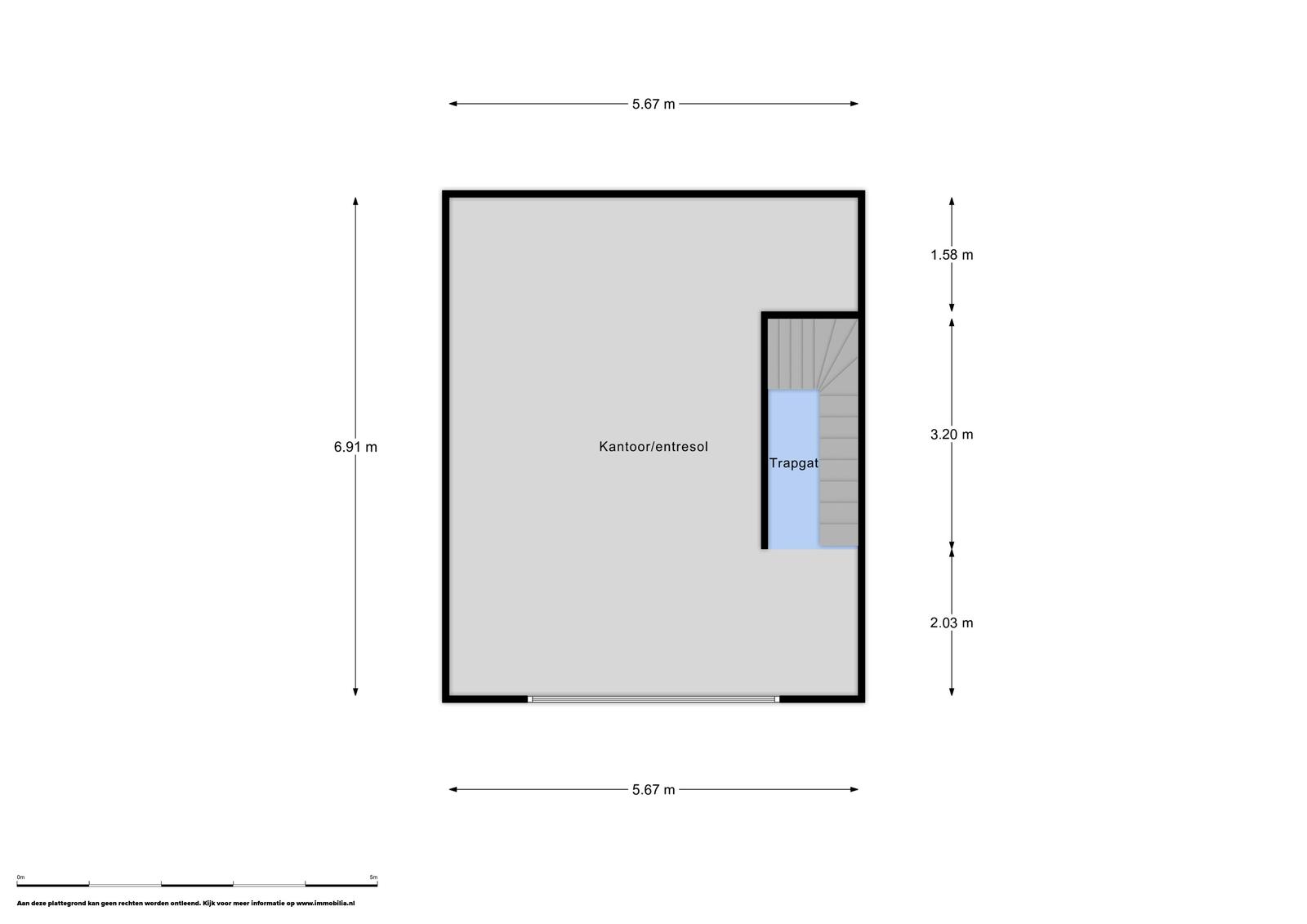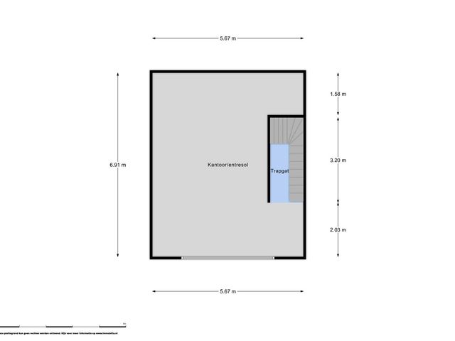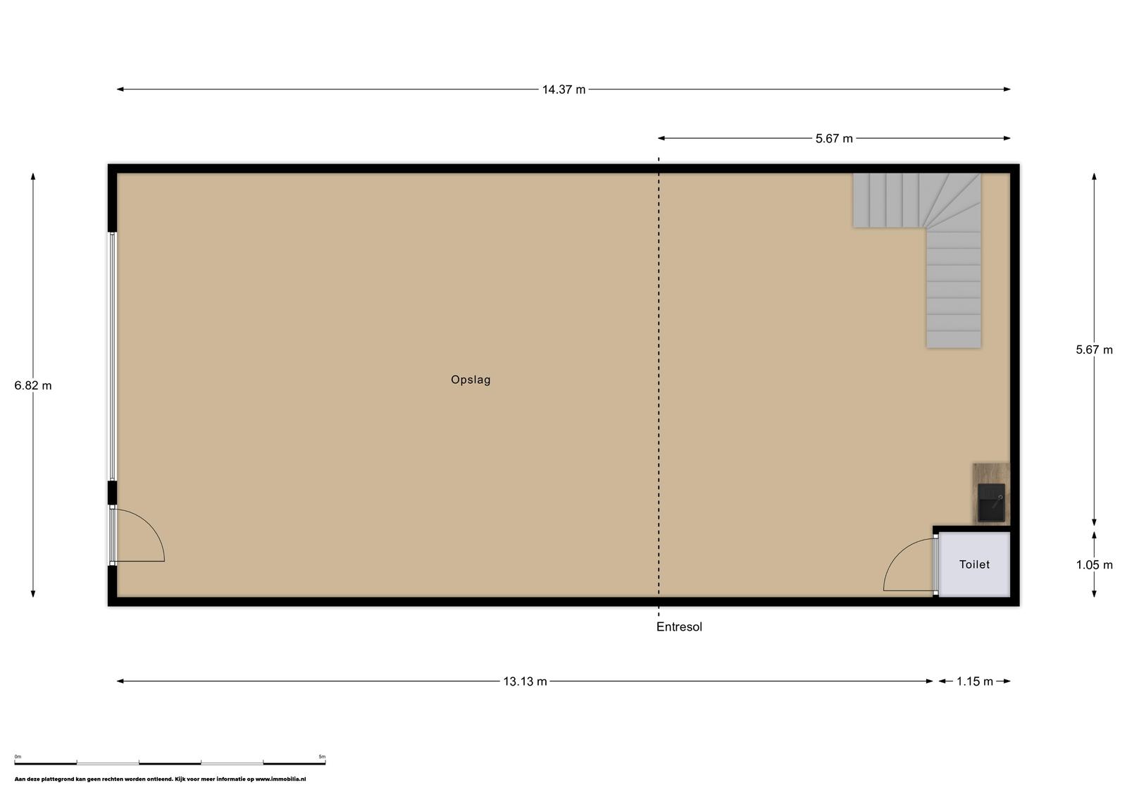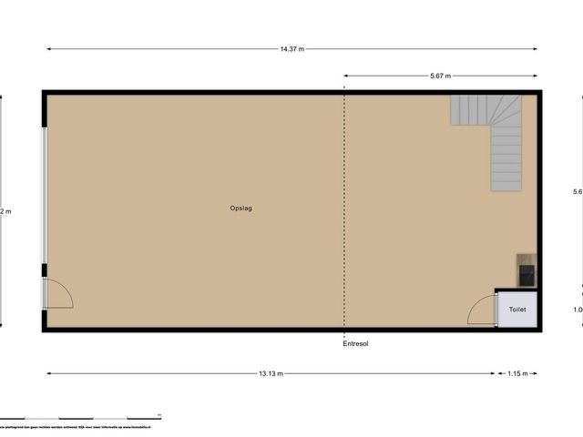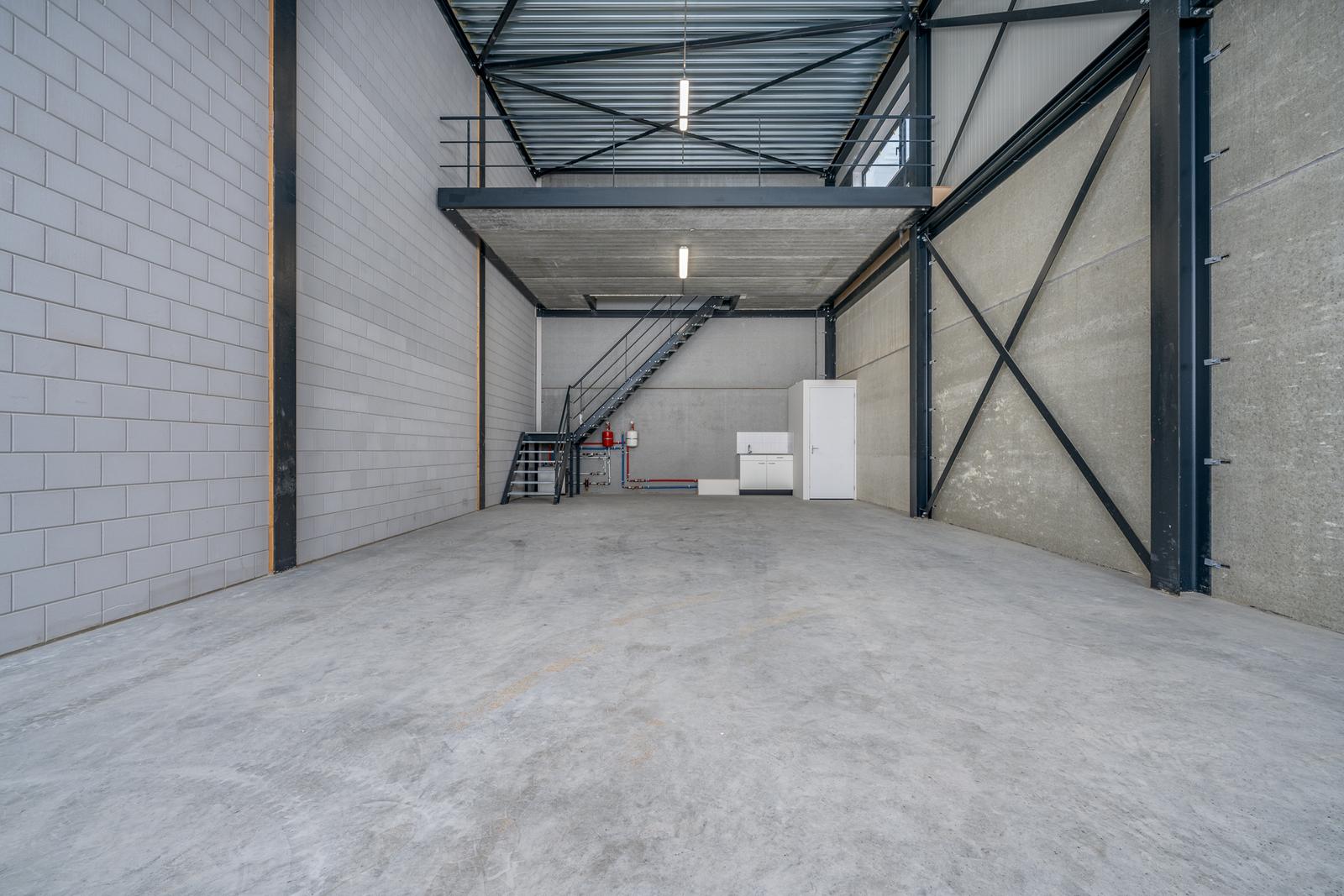De entresol meet ca. 38m2 en ligt aan de achterzijde van de bedrijfshal en heeft middels een raam daglichttoetreding via de zijkant. Vanaf de entresol heb je zicht op de hal.