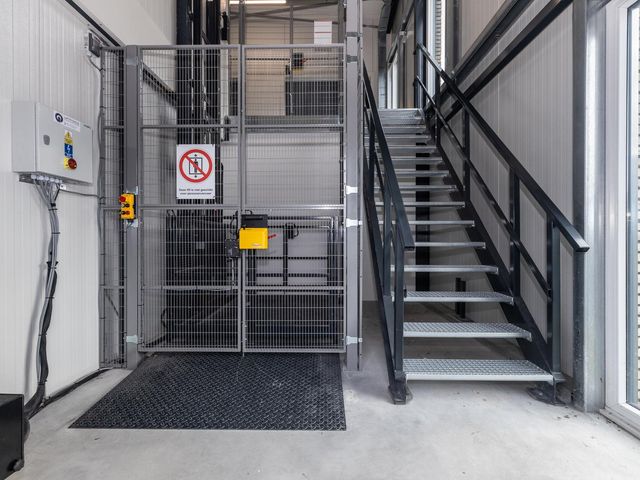 Approximately 17m2 and located on the first floor. Accessible by stairs and a goods lift. The units are equipped with lighting, electrical outlets and a manually operated overhead door. The dimensions are 1.96 x 3.39 x 5.00 (H x W x D).