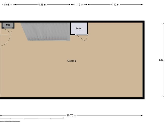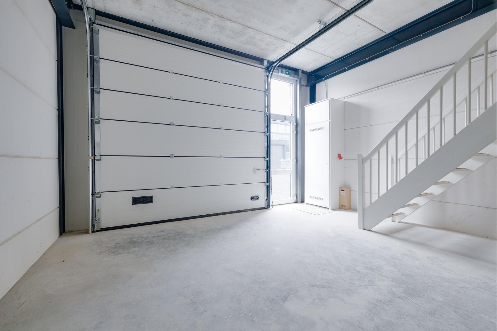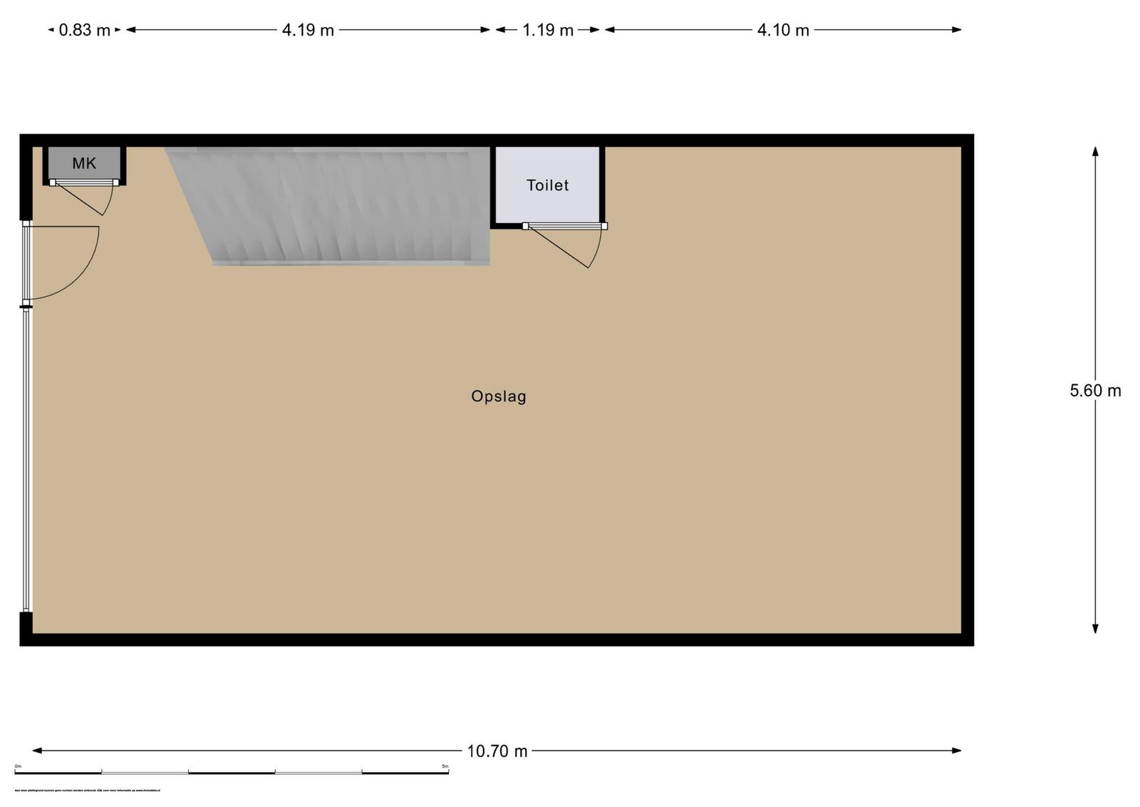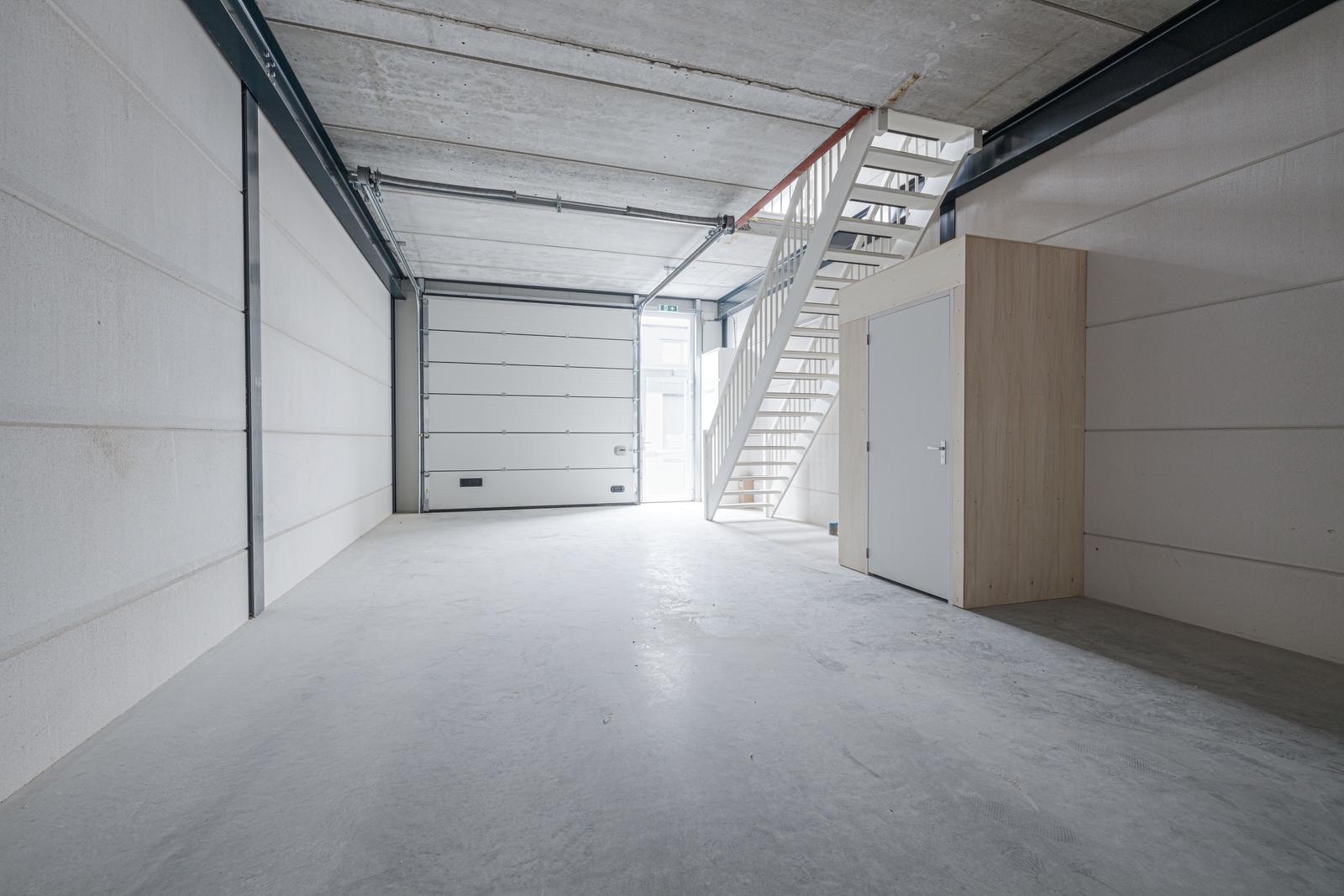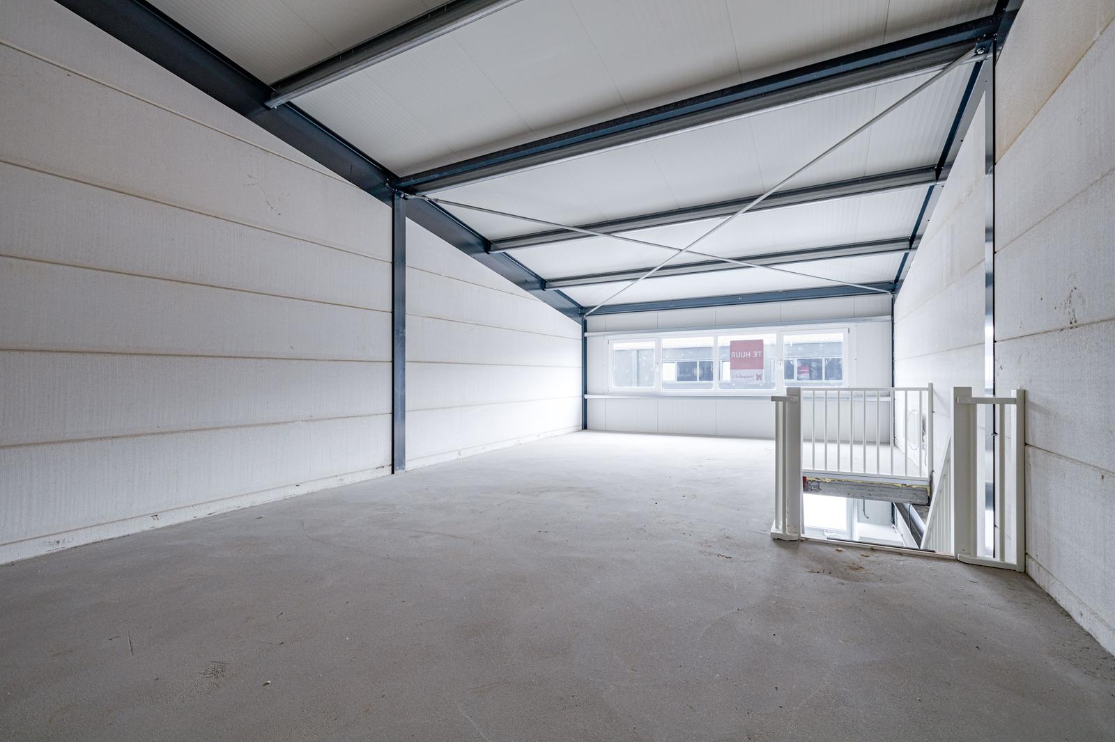 Toegang tot de ruimte via de (loop)deur of de hand bedienbare overheaddeur. De verdieping meet in totaal ca. 61m2. heeft een hoogte van 3,60 meter en uitgevoerd met een keurig toilet. Het toilet is in zijn geheel betegeld met een witte wandtegel, een antracietkleurige vloertegel en is uitgevoerd met een hangend toilet, fonteintje en inbouwspots.