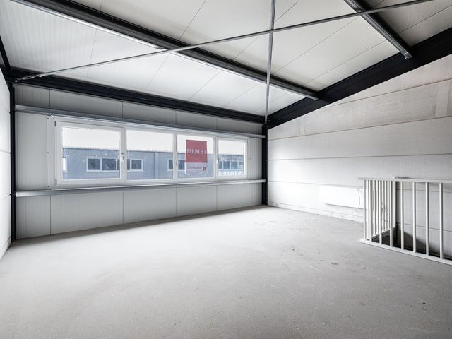 Middels een trap toegang tot de 1e verdieping. Deze lichte ruimte is voor diverse doeleinde te gebruiken. Zo kan het gebruikt worden voor opslag, mede door de aflopende hoogte of is het in te richten als kantoor. Ook deze ruimte meet ca. 61m2, heeft een raampartij aan de voorzijde en is uitgevoerd met een warmtepaneel.