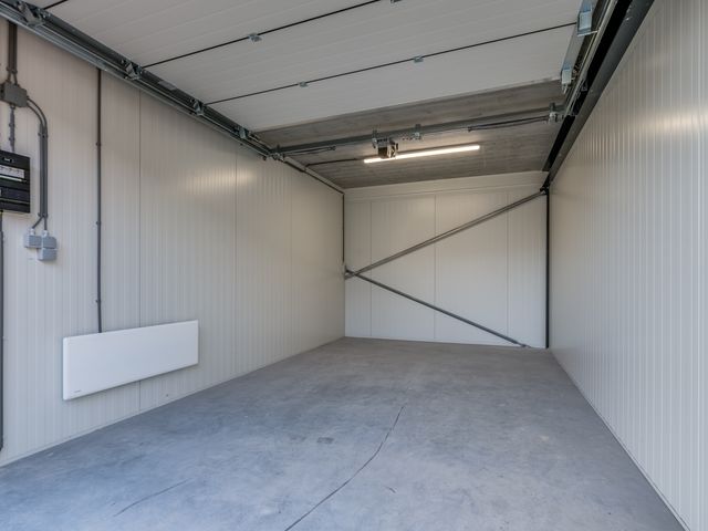 Ca. 20m2 en gelegen op de begane grond. Vanaf het buitenterrein bereikbaar en toegankelijk middels een elektrische overheaddeur. De unit is tevens voorzien van een infrarood paneel voor de nodige warmte. De afmetingen van de box zijn circa 2,24 x 3,09 x 5,75 (H x B x D).