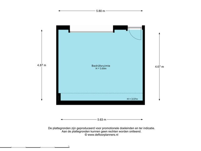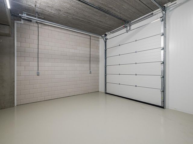 Entrance via an electric overhead door. Wide lanes in the complex with access to an outdoor area at the rear. Commercial unit of approx. 28m2 located on the ground floor with a height of approx. 3.65 metres. The unit is accessible via an electrically operated overhead door and an adjacent pedestrian door. The space has a maximum depth of 4.87 metres and a maximum width of 5.80 metres. The unit is equipped with LED lighting, various wall sockets and an epoxy-coated floor.