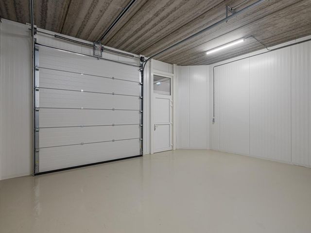 Entrance via an electric overhead door. Wide lanes in the complex with access to an outdoor area at the rear. Commercial unit of approx. 39m2 located on the ground floor with a height of approx. 3.65 metres. The unit is accessible via an electrically operated overhead door and an adjacent pedestrian door. The space has a maximum depth of 5.92m and a maximum width of 6.7m. The unit is equipped with LED lighting, various wall sockets and an epoxy-coated floor.