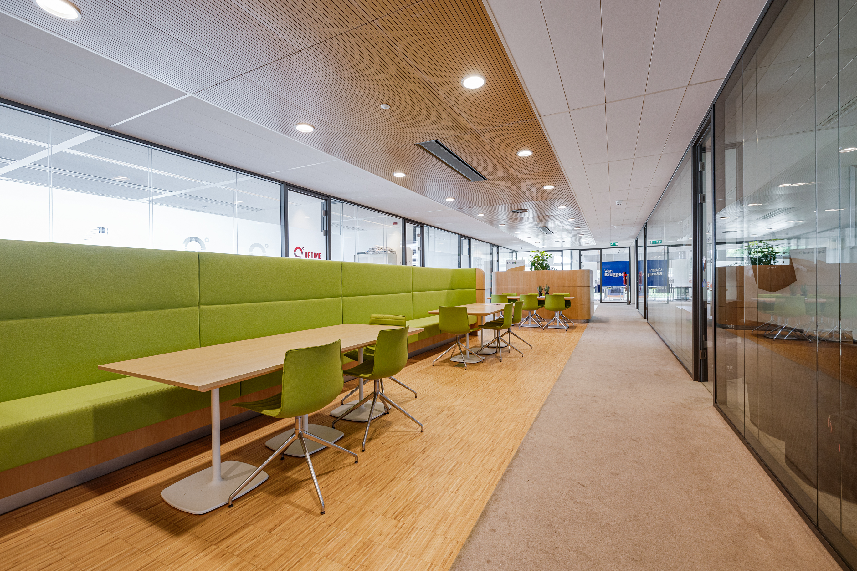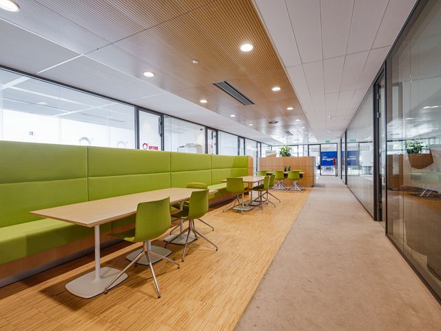 - Riante centrale ruimte met toegang tot de diverse kantoorunits, ingericht met diverse zitjes om te overleggen met klanten, relaties en collega's;