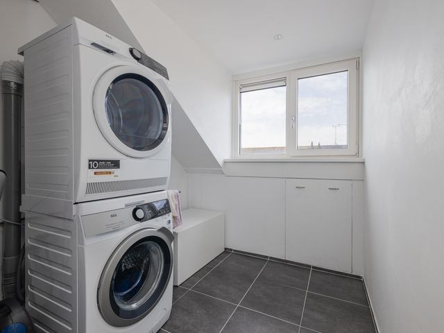 De wasruimte is ca. 8m2 en biedt tevens plaatst aan de opstelplaats voor de cv-ketel. Tevens nog wat bergruimte in de knieschotten.