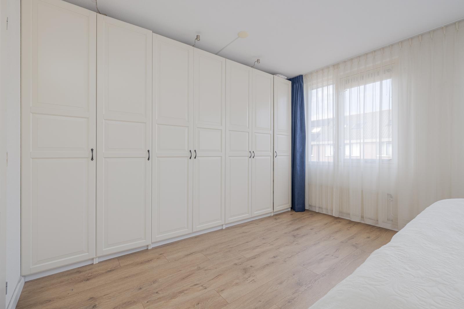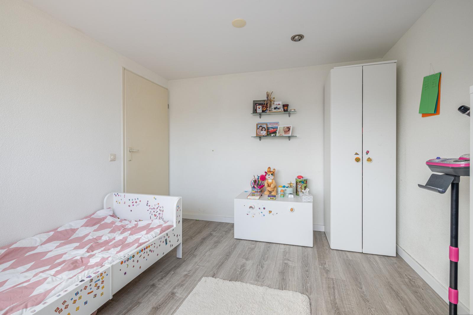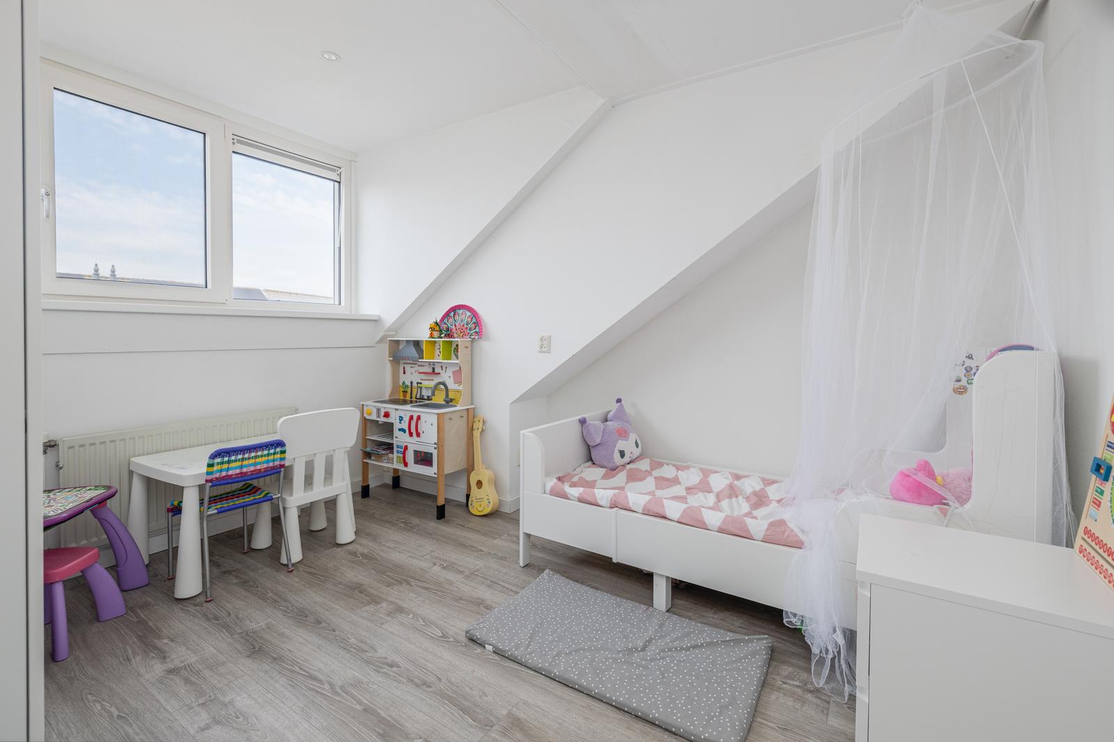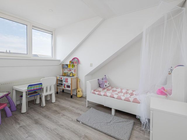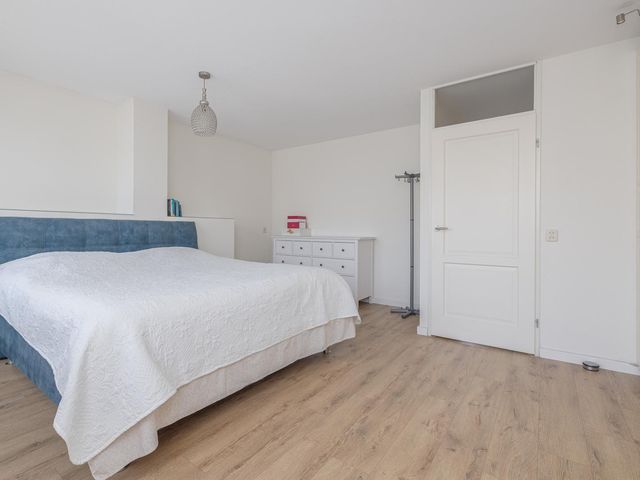 Overloop met toegang tot de twee slaapkamers en de wasruimte. Op de overloop tref je bergruimte en tevens toegang tot de vliering middels een vlizotrap. De slaapkamer aan de voorzijde is ca. 10m2 en is uitgevoerd met een dakkapel en inbouwspots. De slaapkamer aan de achterzijde is ca. 10me en is uitgevoerd met een gloednieuwe dakkapel, geplaatst in juni 2025! Beide slaapkamers zijn voorzien een lichte laminaatvloer.