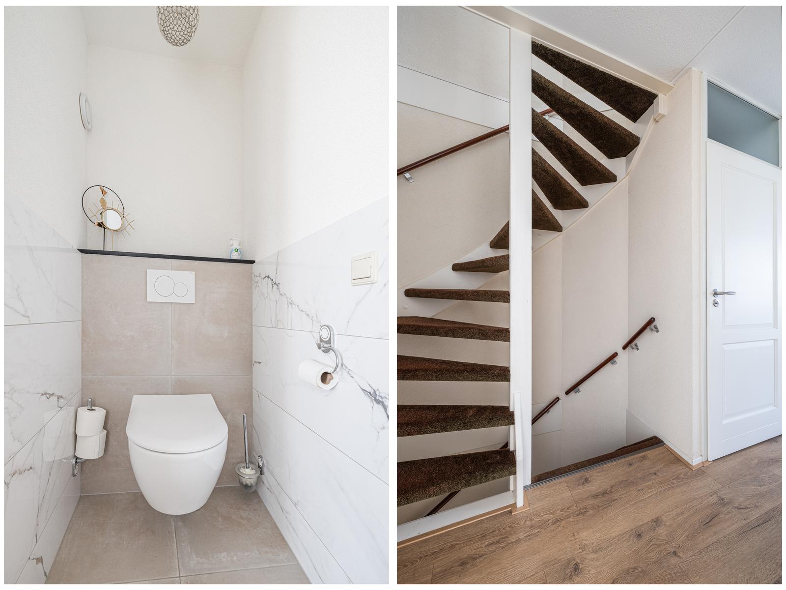 Zodra je binnenkomt in de hal merk je het al, dit huis is tot in de puntjes verzorgd. Vanuit de hal heb je toegang tot het toilet, de woonkamer én de trap naar boven. Het toilet is in zijn geheel betegeld in lichte kleurstelling en voorzien van een hangend toilet en een fonteintje.