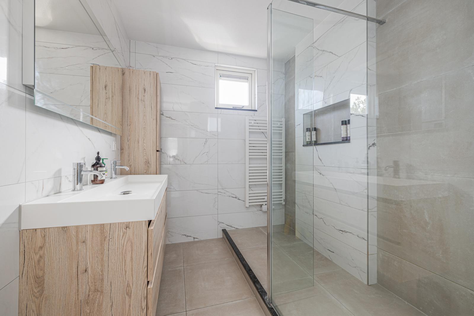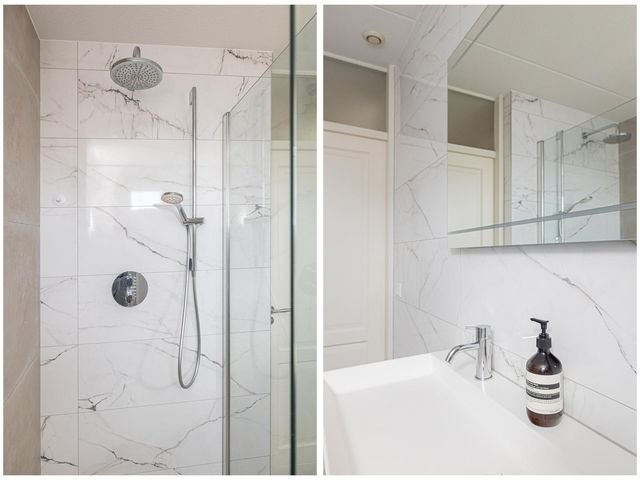 De badkamer is echt een plaatje: luxe uitgevoerd met een inloopdouche, dubbele wastafel en een designradiator. Alles is afgewerkt in een lichte, moderne kleurstelling, helemaal van nu! Er is een apart toilet op deze verdieping. Wel zo handig!