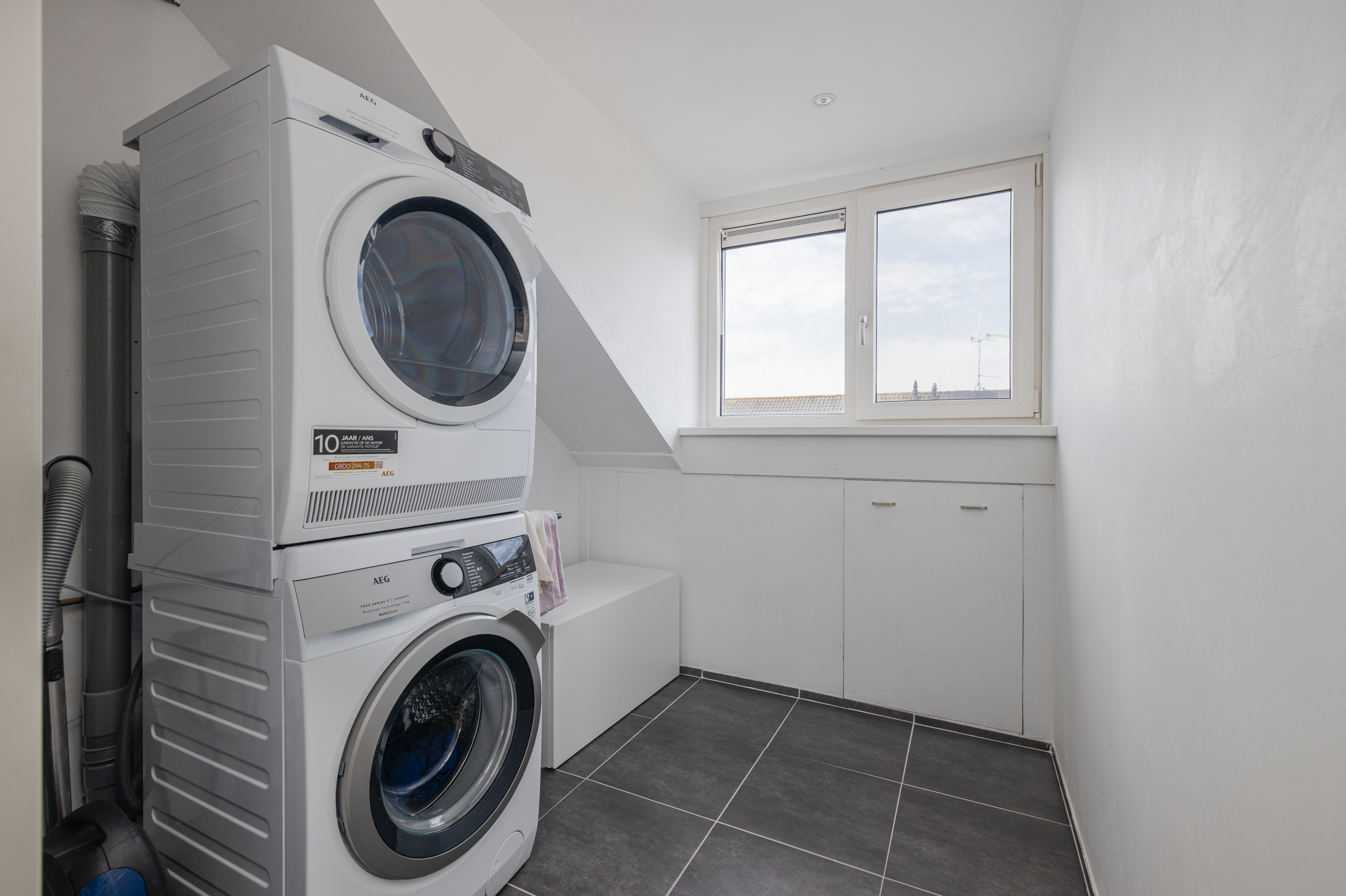 De wasruimte is ca. 8m2 en biedt tevens plaatst aan de opstelplaats voor de cv-ketel. Tevens nog wat bergruimte in de knieschotten.