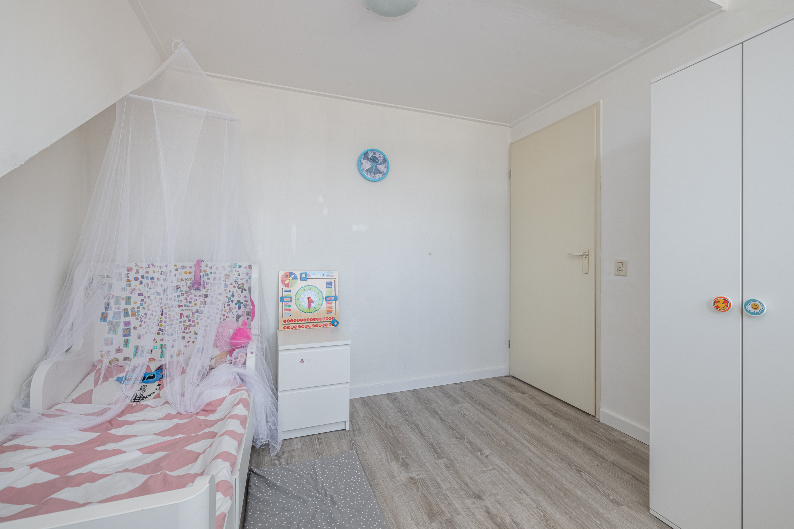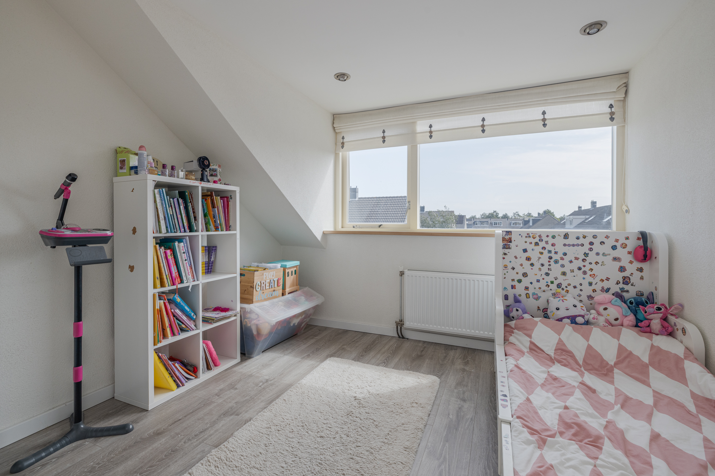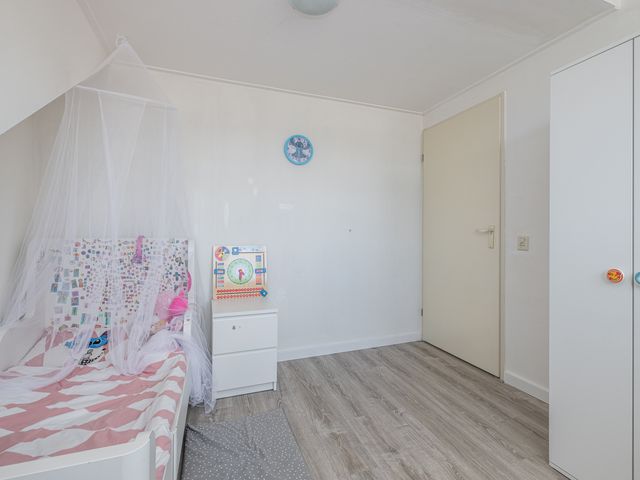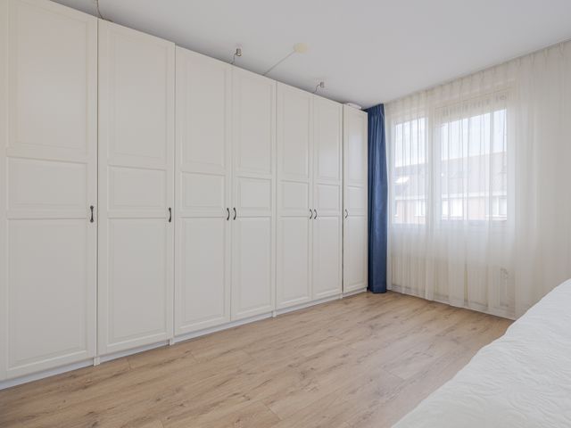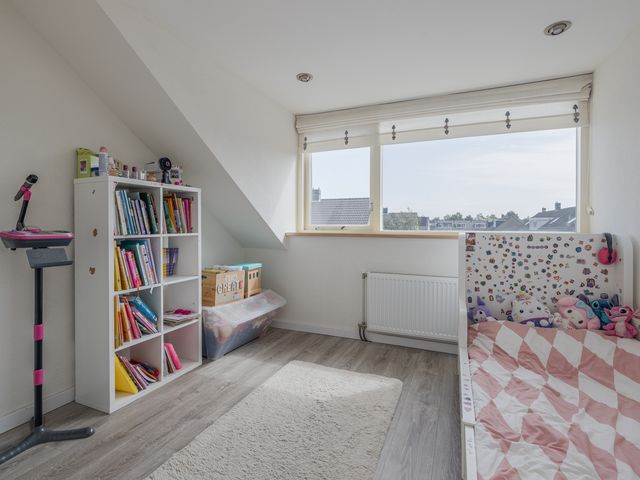 Overloop met toegang tot de twee slaapkamers en de wasruimte. Op de overloop tref je bergruimte en tevens toegang tot de vliering middels een vlizotrap. De slaapkamer aan de voorzijde is ca. 10m2 en is uitgevoerd met een dakkapel en inbouwspots. De slaapkamer aan de achterzijde is ca. 10me en is uitgevoerd met een gloednieuwe dakkapel, geplaatst in juni 2025! Beide slaapkamers zijn voorzien een lichte laminaatvloer.
