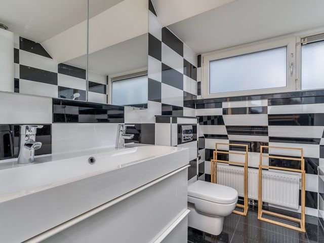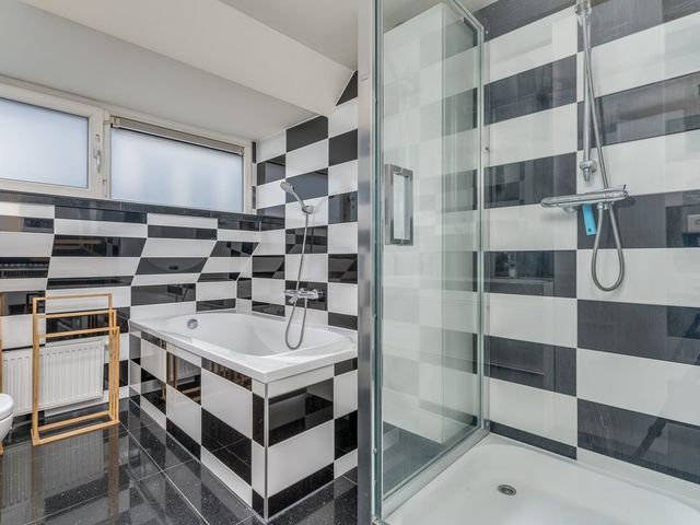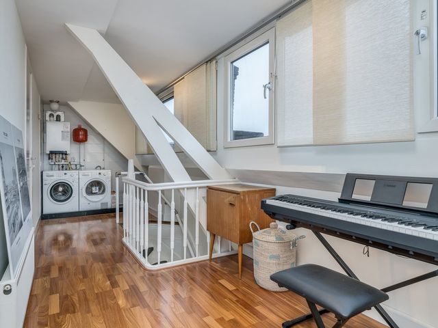 Ruime en lichte overloop met toegang tot alle vertrekken en tevens tref je hier de opstelling voor de wasmachine en wasdroger en de cv-ketel. De slaapkamers zijn resp. ca. 9m2, 10m2 en 17m2. Een van de slaapkamers is uitgevoerd met een inbouw kledingkast. De keurige badkamer is voorzien van een ligbad, douche, wastafel en 2e toilet.