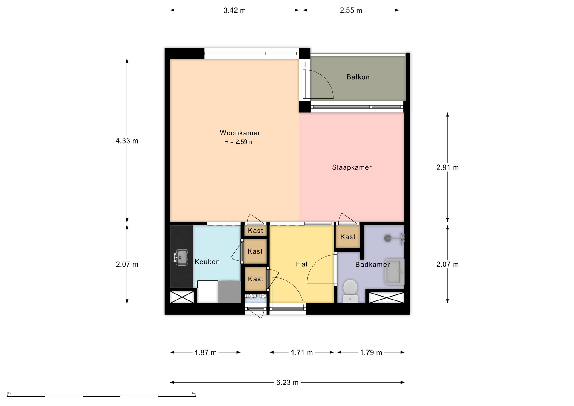 - Berging in de onderbouw (ca. 1.60 x 4.30).