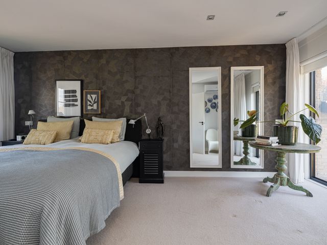 De hoofdslaapkamer is ca. 17m2 en is een heerlijke ruimte. Vanuit slaapkamer is er middels een deur toegang tot het balkon met een mooi uitzicht aan de achterzijde over de tuin. Deze kamer is voorzien van een airco-unit.