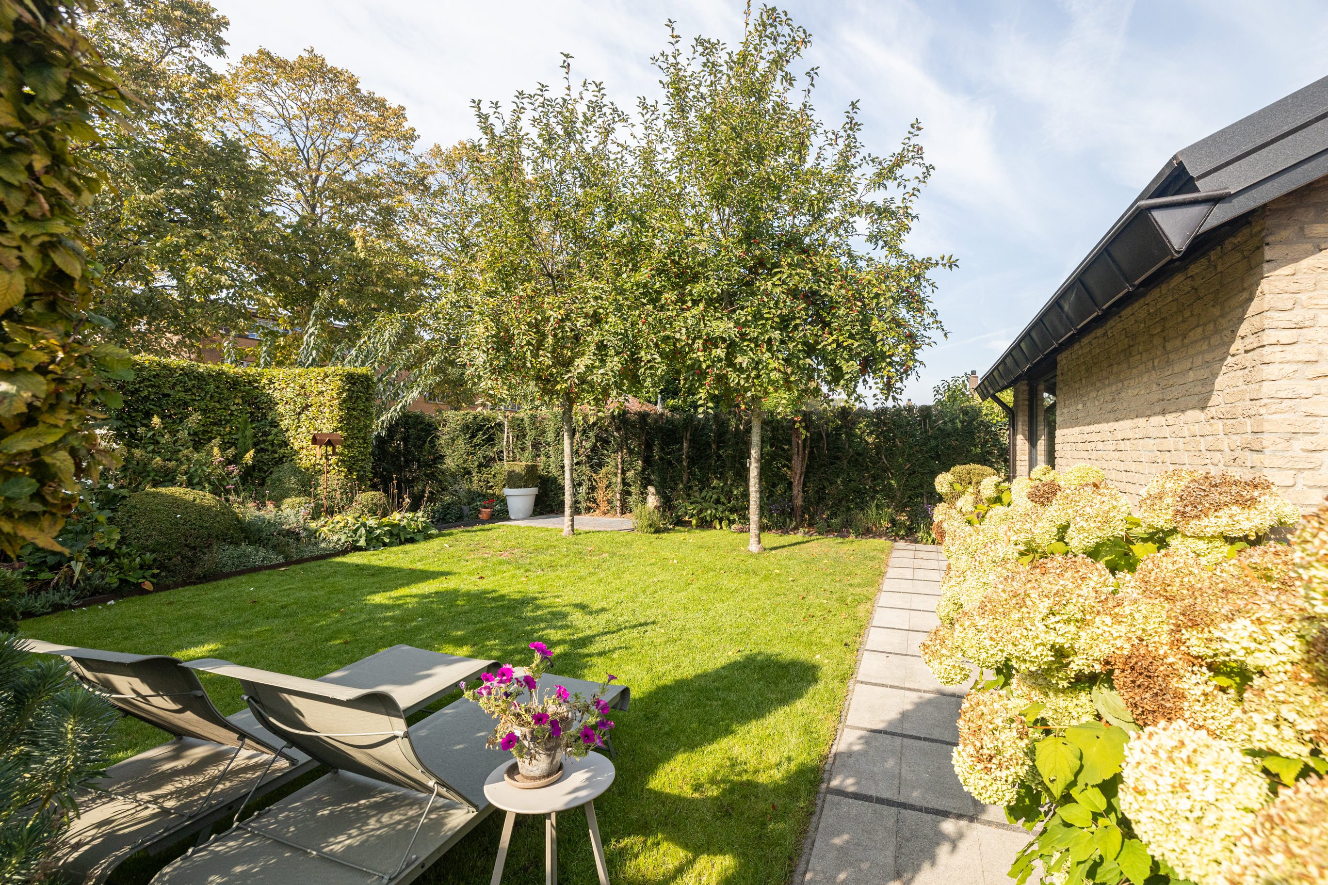 De achtertuin is royaal te noemen en gelegen op het zonnige zuid-westen. Aan de achterzijde is deze gelegen aan het water met vrij uitzicht. De tuin is voorzien van div. terrassen. Een mooie overkapping met open haard is een heerlijke plek om te genieten!