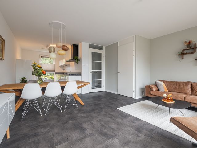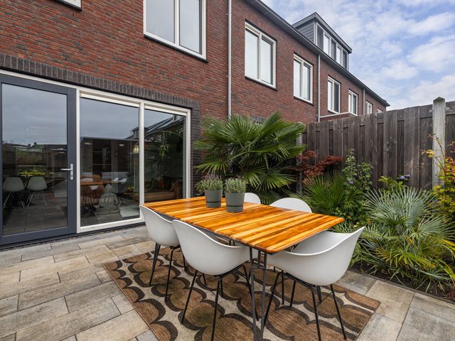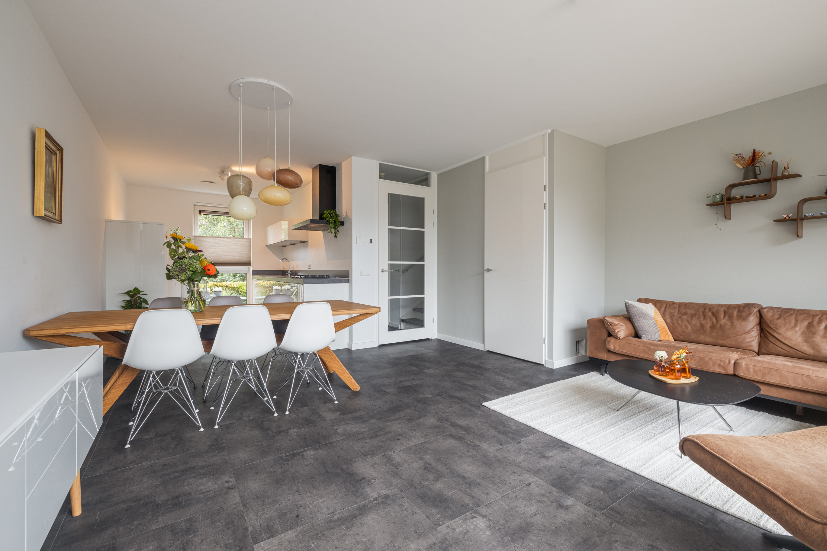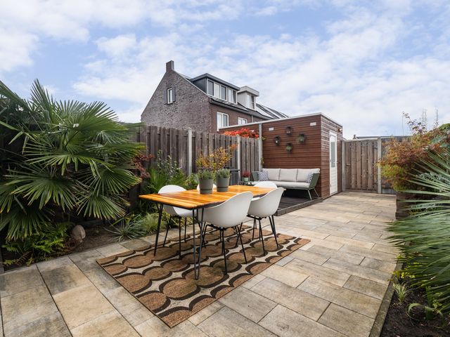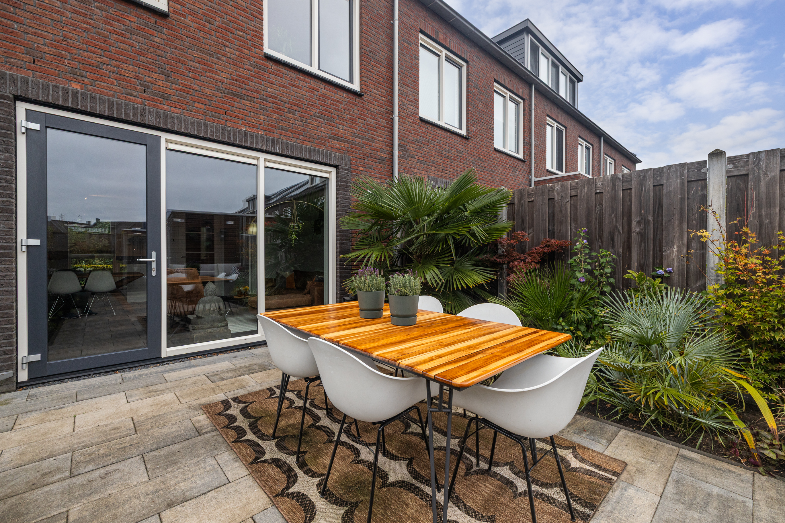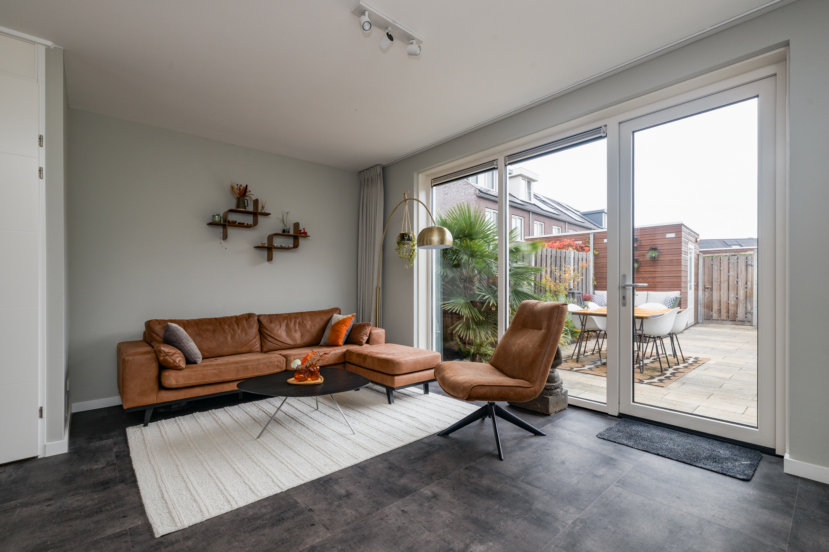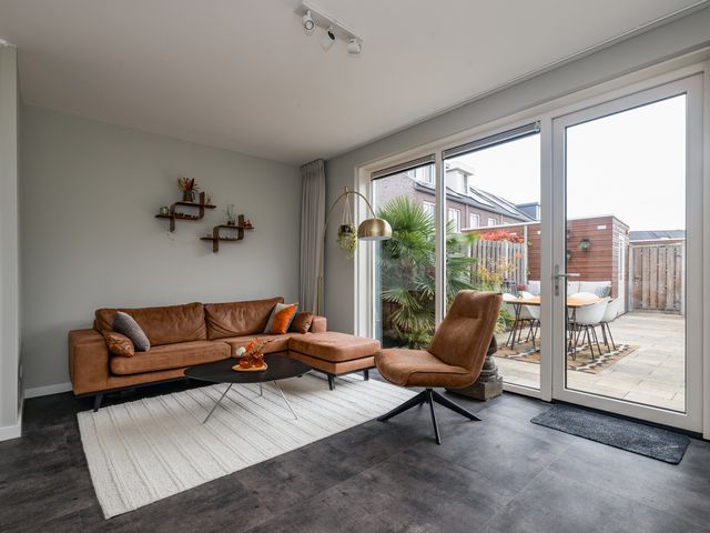 Vanuit de woonkamer stap je direct de achtertuin in, ideaal voor ontspanning of gezellig samenzijn.