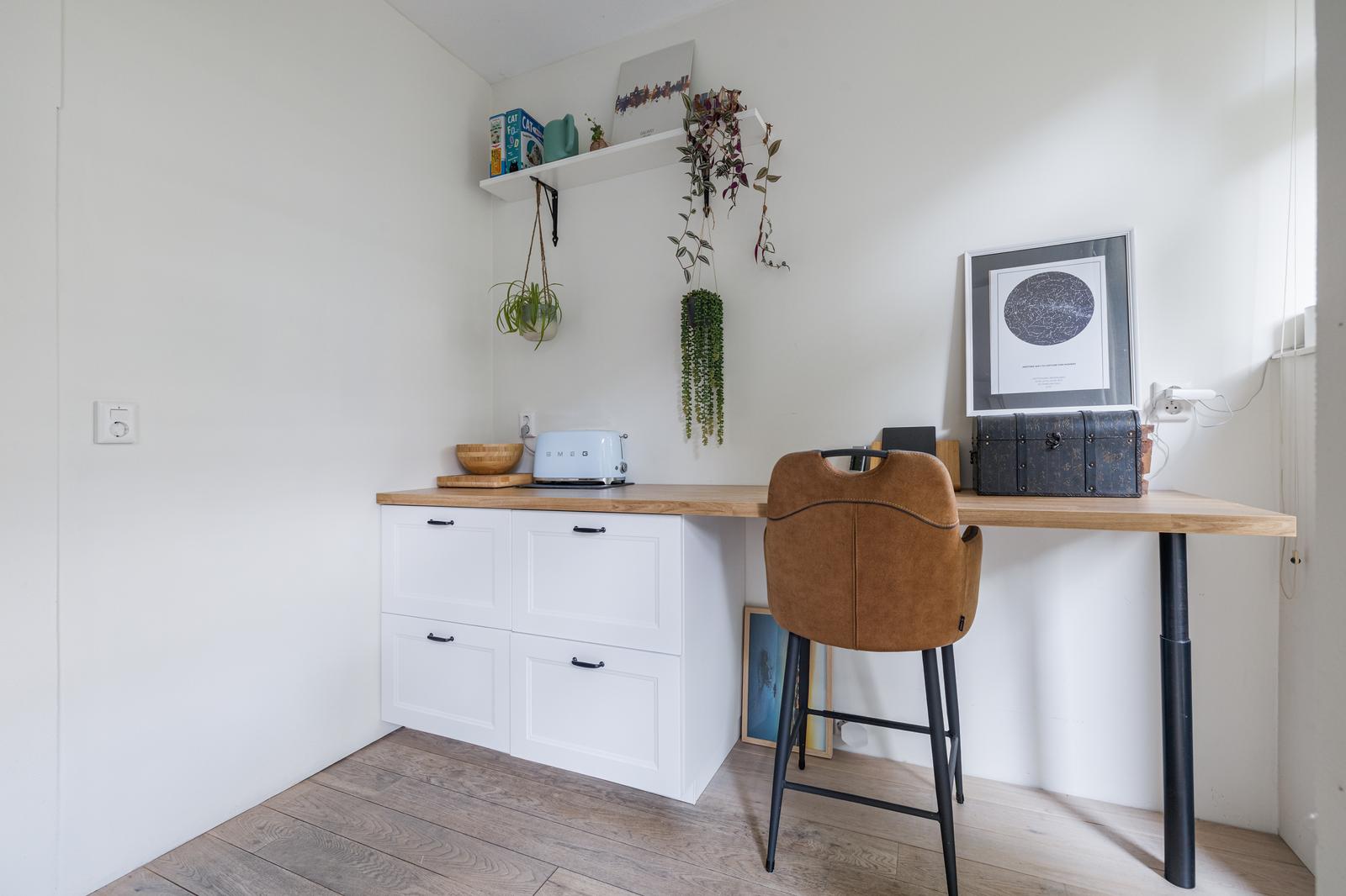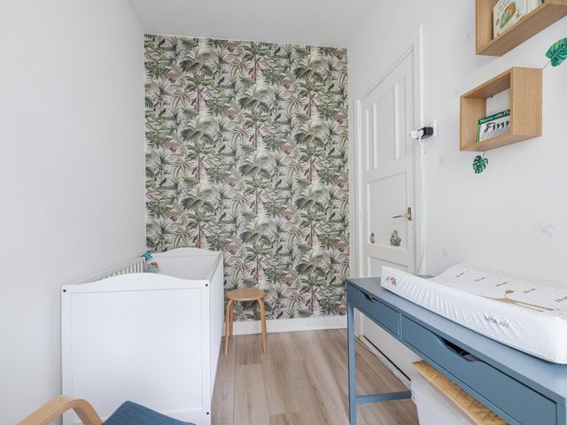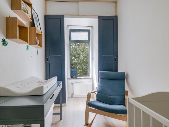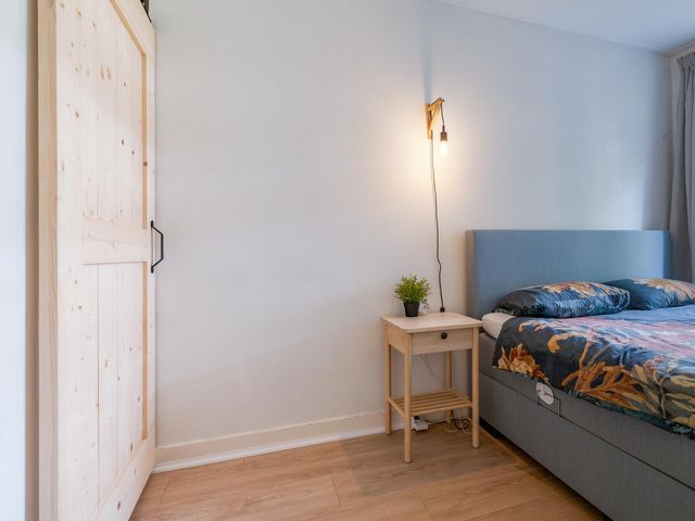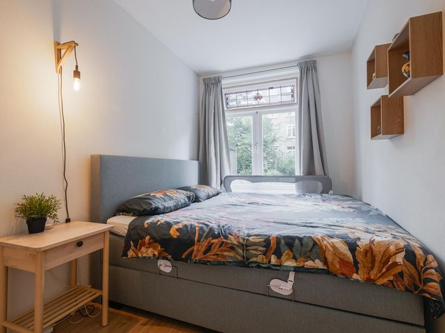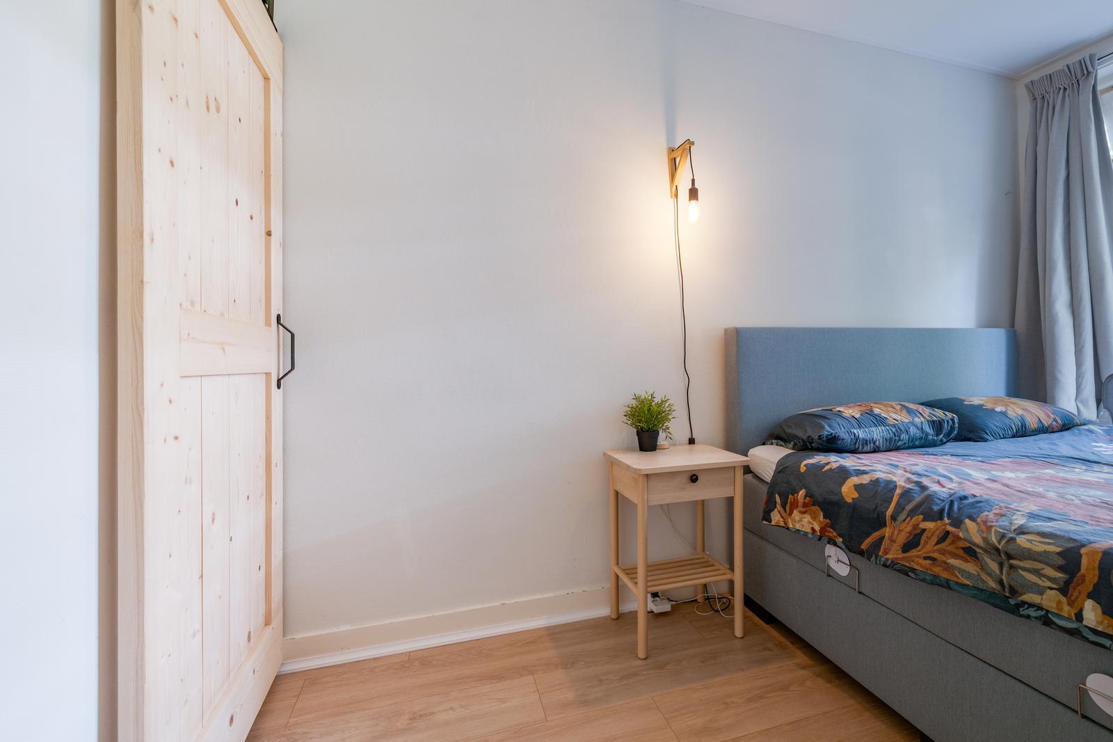 Aan de voorzijde tref je een slaapkamer van ca. 6,5m2 met uitzicht op de voortuin. Bonuspunten voor het souterrain van ca. 12m2 met stahoogte en te openen raam, ideaal als werkplek, extra opslag of chillruimte. Te bereiken middels een deur in de badkamer. De badkamer is in zijn geheel betegeld en uitgevoerd met een ligbad, badkamermeubel met wastafel en een handdoeken radiator. Het toilet is apart gesitueerd naast de badkamer. Aan de achterzijde tref je de slaapkamer van ca. 8,6m2 met vaste kast.