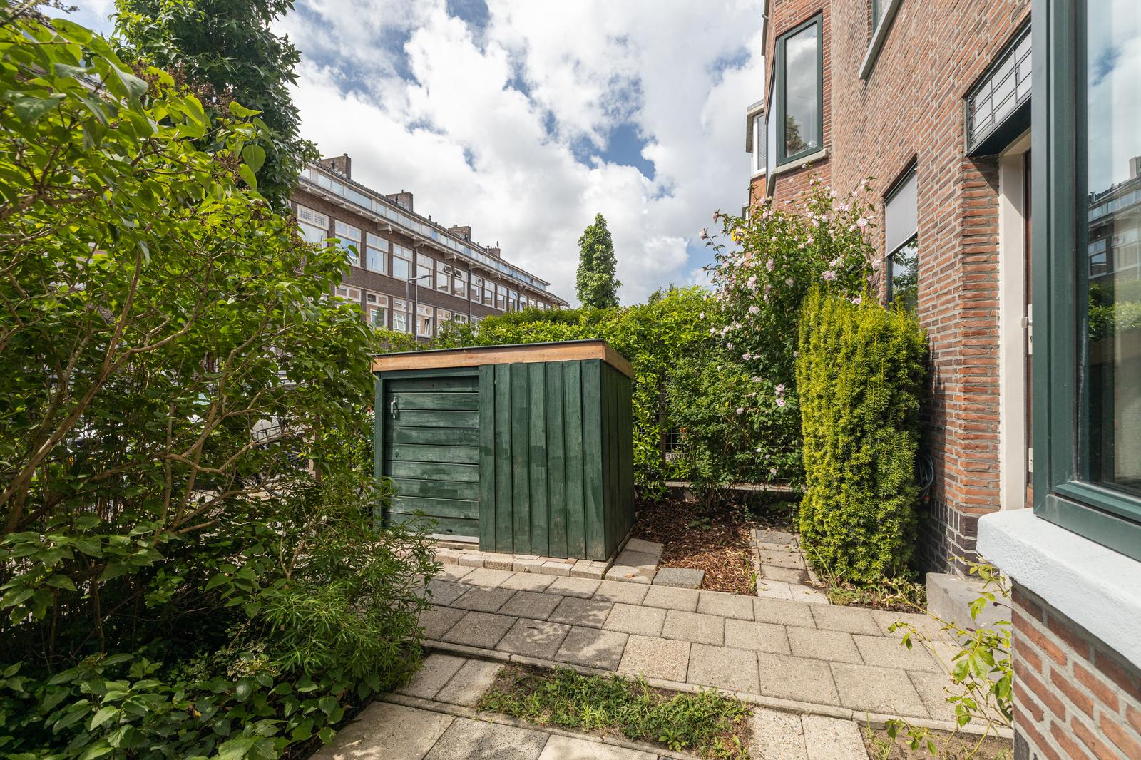 - Houten schuur in de voor- en achtertuin.