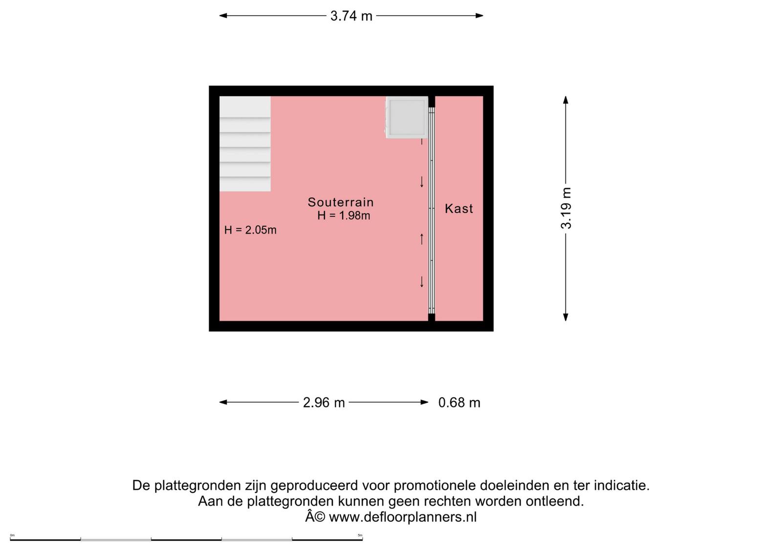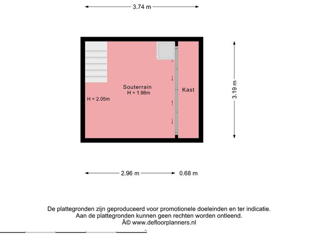 - Souterrain van ca. 12m2 met stahoogte (1,98m hoog). Deze vierkante meters zijn opgeteld bij het woonoppervlak.