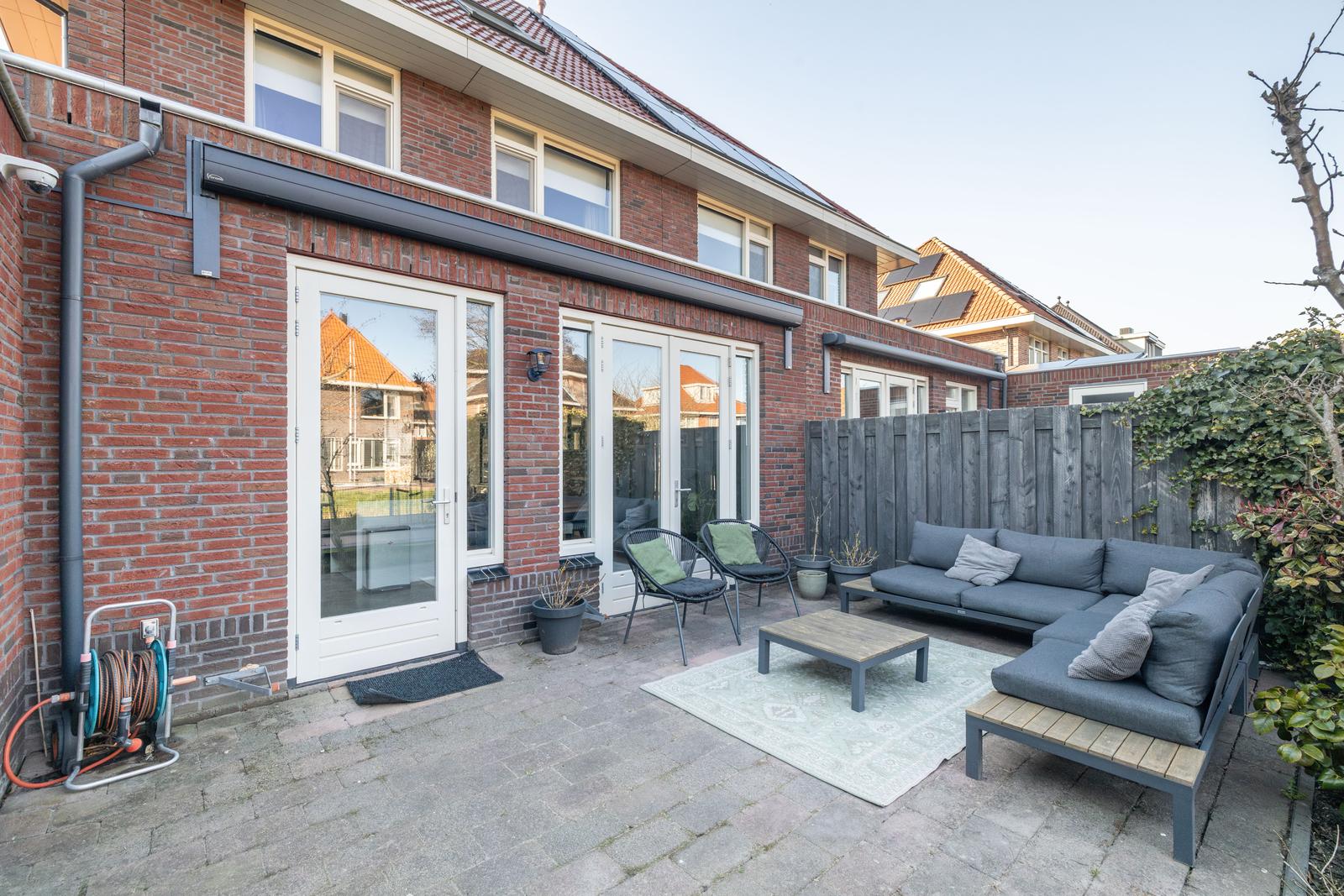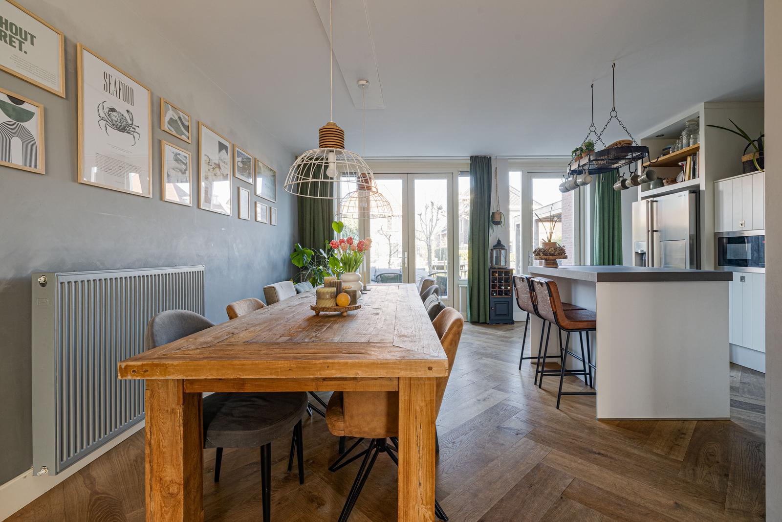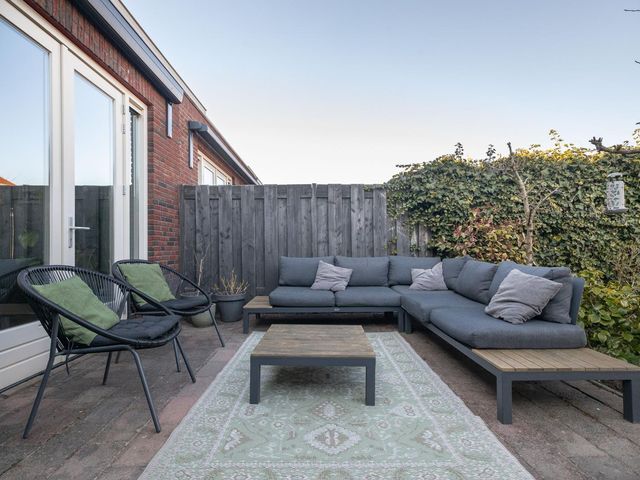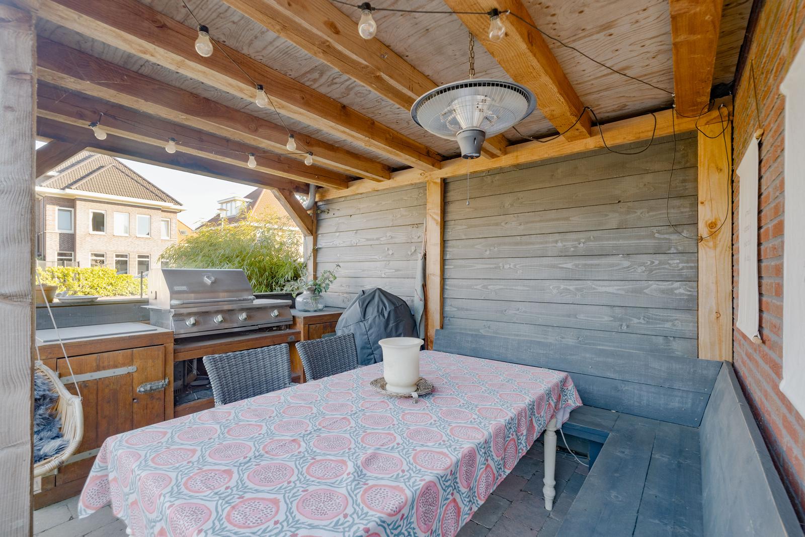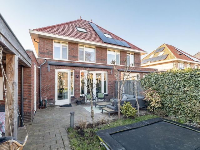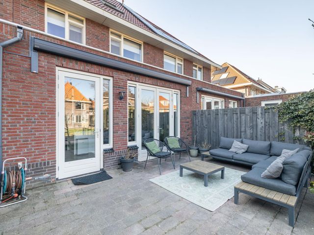 Via openslaande deuren is de zonnige, diepe achtertuin bereikbaar. Gelegen op het oosten, direct aan het water en voorzien van een ruim terras en een houten overkapping. Perfect om het hele jaar door van buiten te genieten.