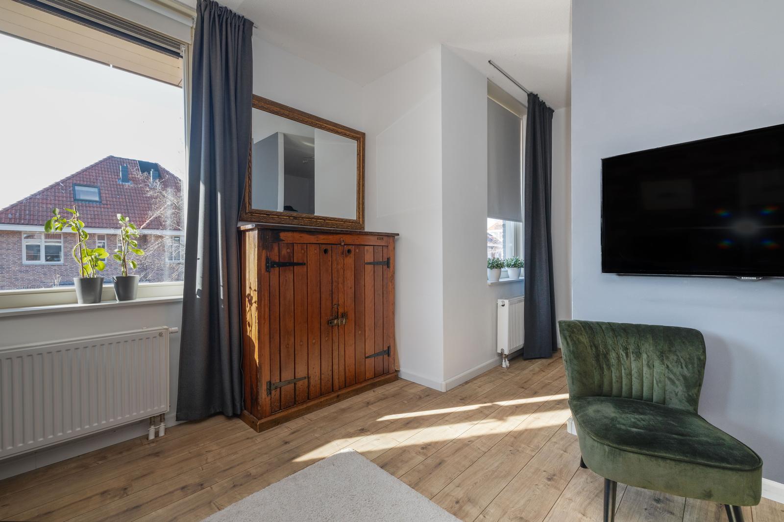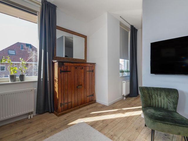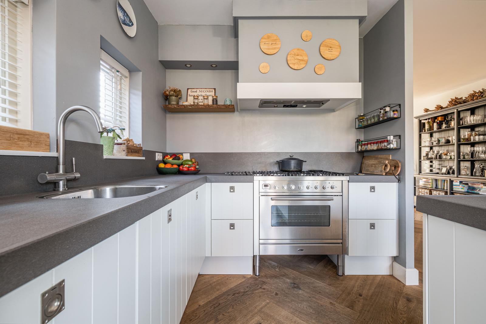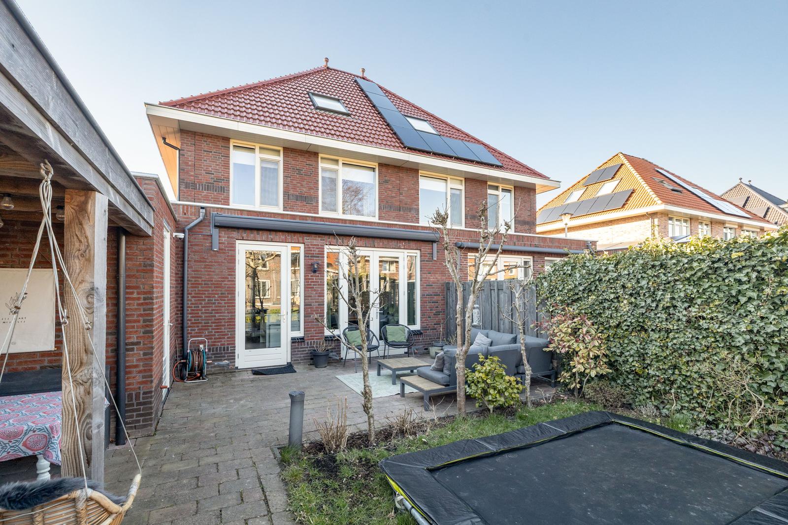 Via openslaande deuren is de zonnige, diepe achtertuin bereikbaar. Gelegen op het oosten, direct aan het water en voorzien van een ruim terras en een houten overkapping. Perfect om het hele jaar door van buiten te genieten.