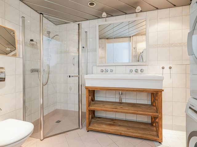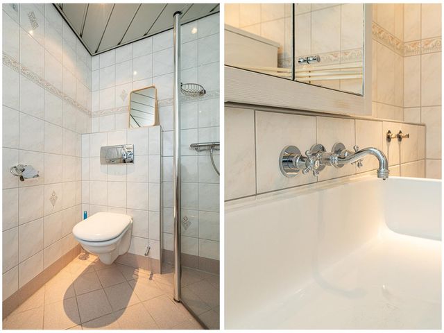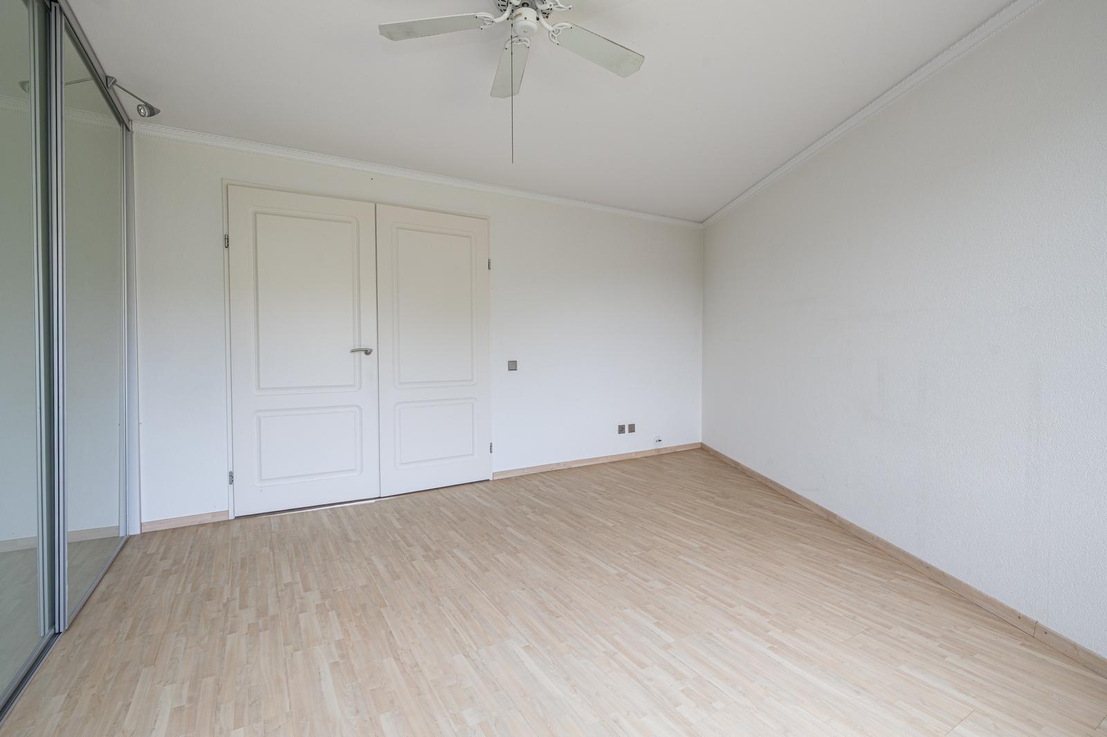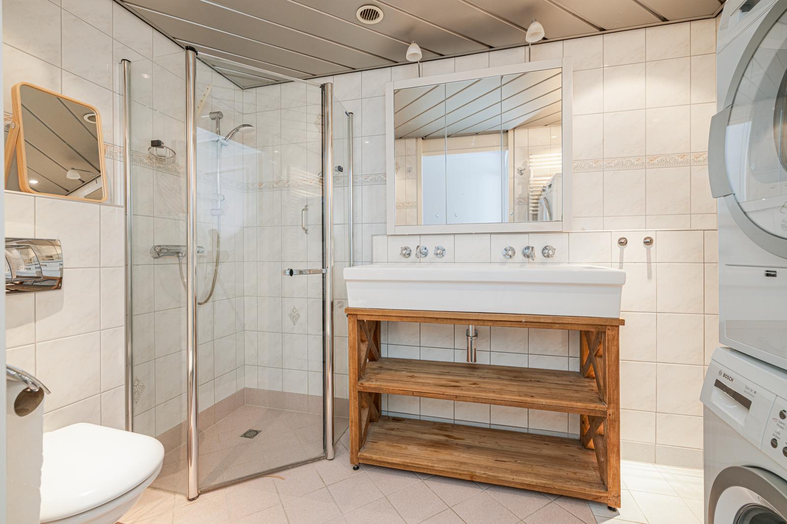De woning beschikt over twee ruime slaapkamers van ca. 20m2 en ca. 14m2, beide voorzien van praktische schuifkasten. De moderne badkamer (ca. 5m2) is volledig betegeld en uitgerust met een douchecabine, dubbel wastafelmeubel, hangend toilet, én ruimte voor een wasmachine en droger. Daarnaast is er een separaat tweede toilet met fonteintje en een handige bergkast.
