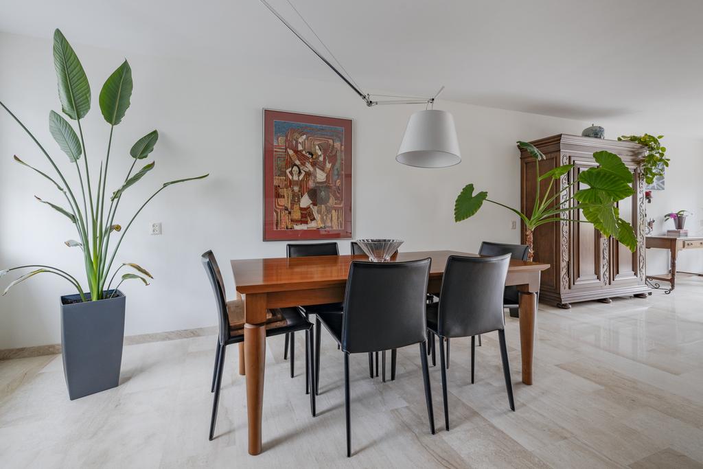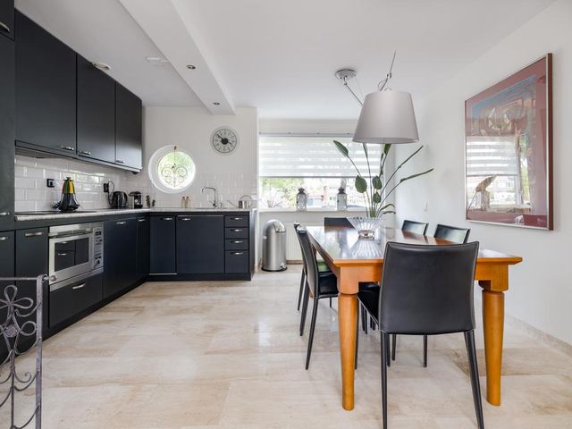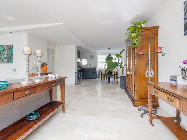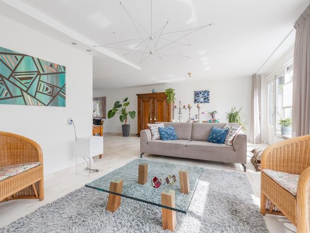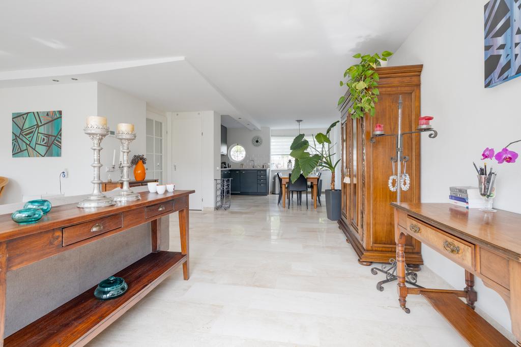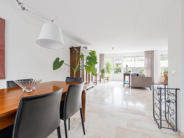 De gehele living is voorzien van een nette natuurstenen (marmer)vloer met vloerverwarming en diverse inbouwspots.