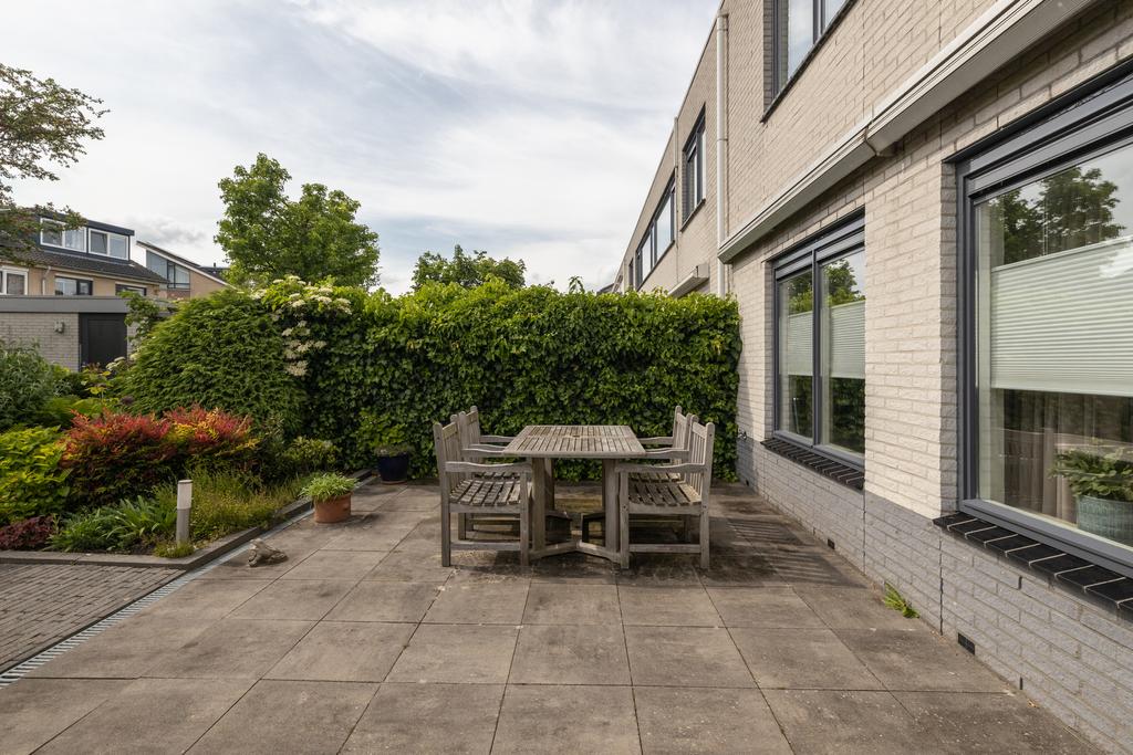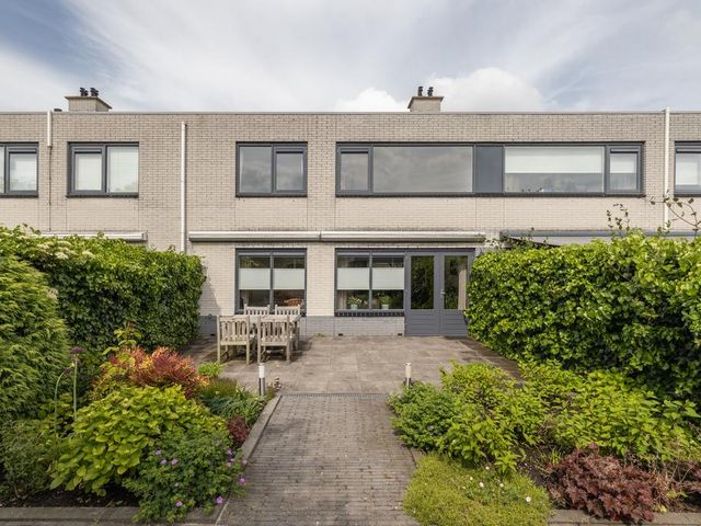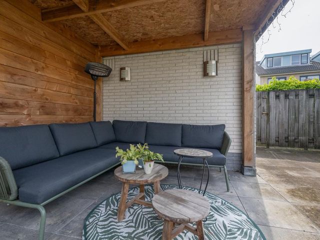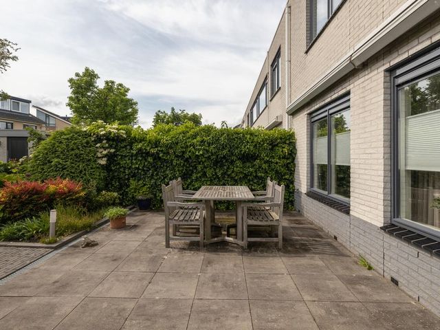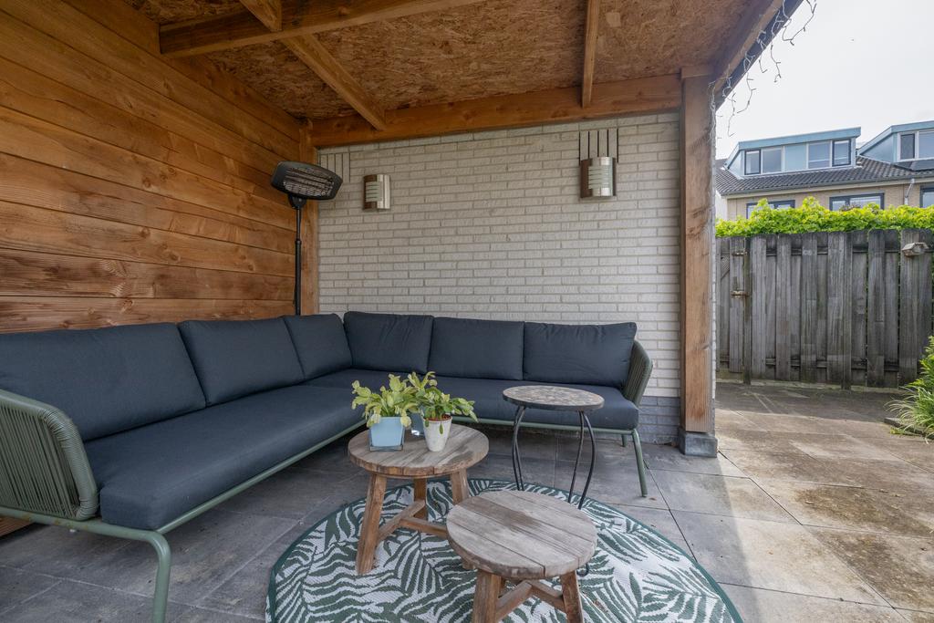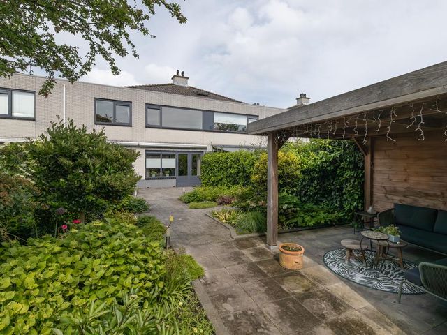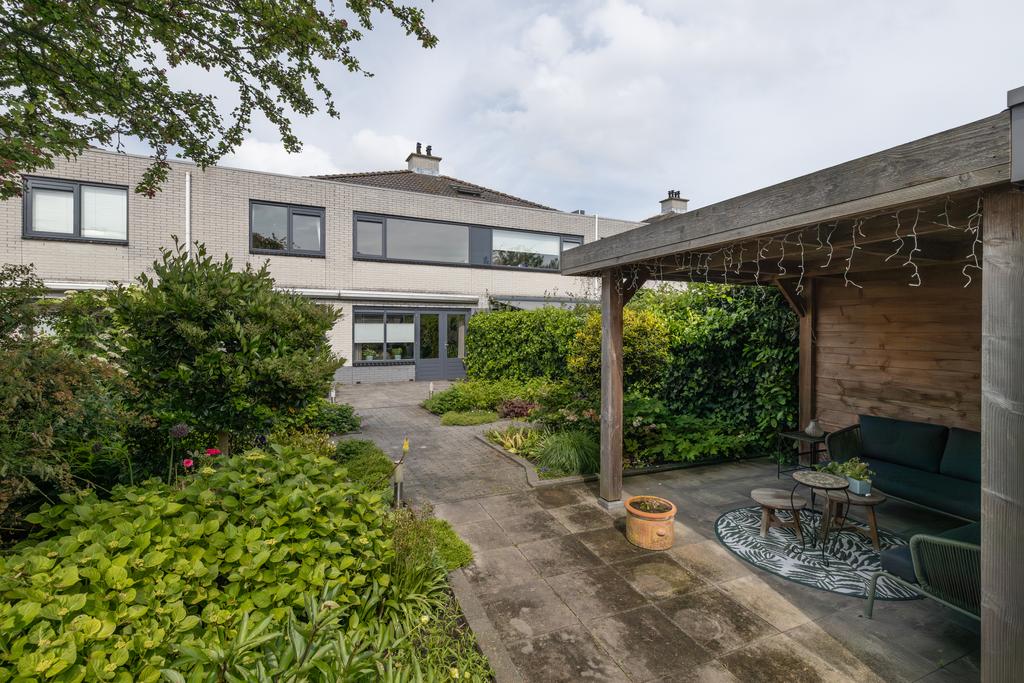 De zonnige en 15 meter diepe achtertuin is gelegen op het zuidwesten en beschikt over een ruim terras en veel groen. Aan de achterzijde is een vrijstaande stenen schuur te vinden met overkapping en achterom. Daarbij beschikt de woning over een zonnescherm.