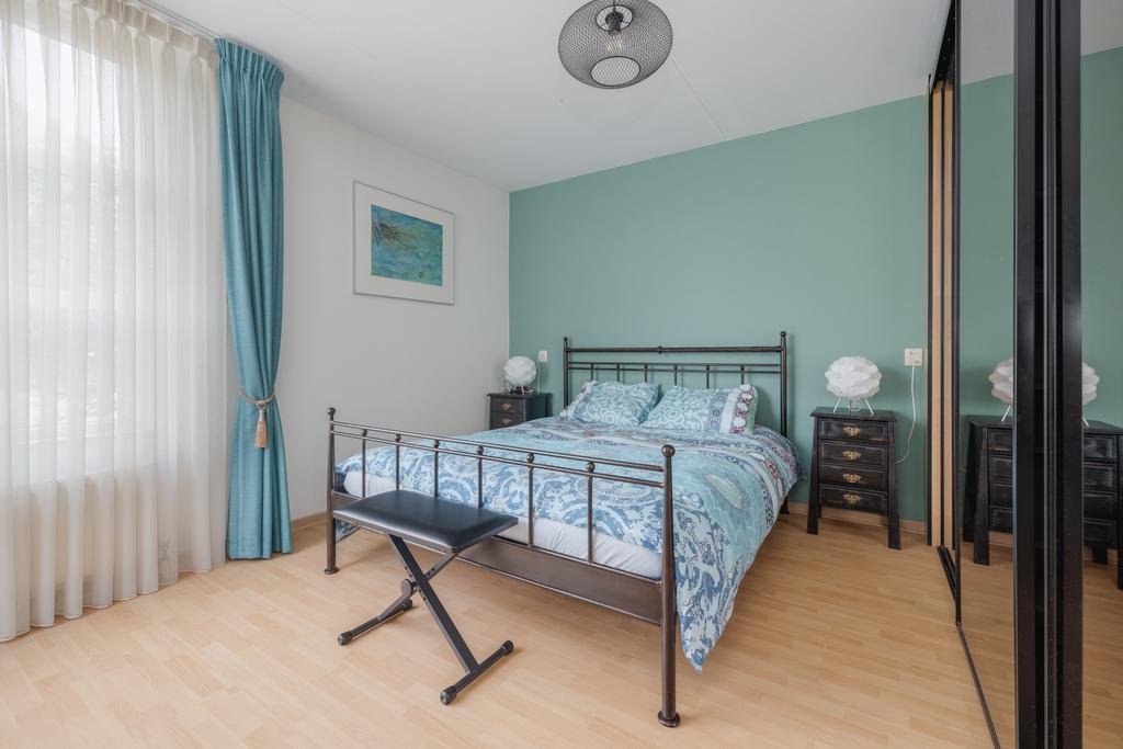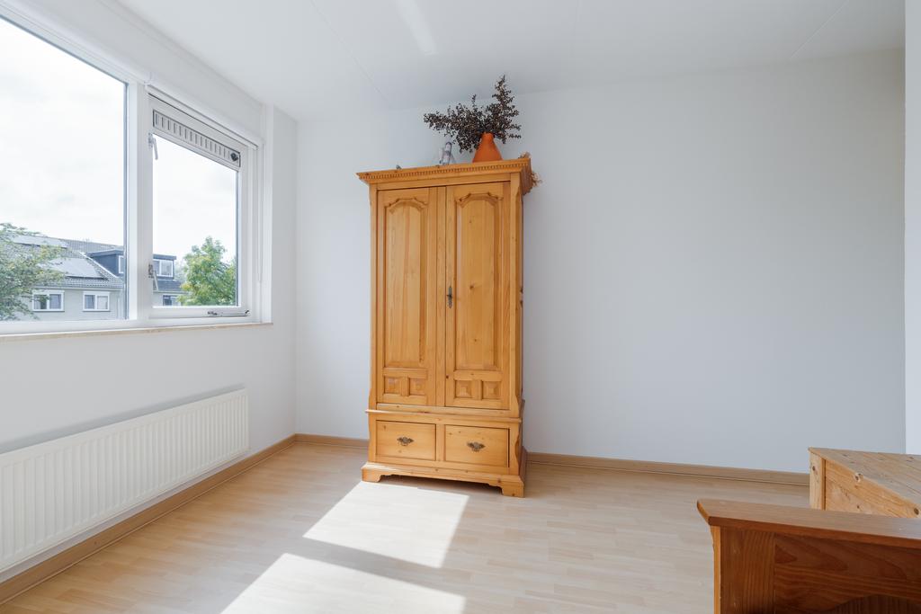Overloop met toegang tot alle vertrekken. Aparte deur met trap naar de tweede verdieping. De hoofdslaapkamer is gelegen aan de voorzijde en is circa 17m2. De kamer beschikt over een ruim tweepersoonsbed met nachtkastjes aan weerszijden en een ruime inbouw(spiegel)kast. Slaapkamer II is gelegen aan de achterzijde en is momenteel ingericht als studeerkamer met bureau en open inbouwkast. Slaapkamer III, eveneens gelegen aan de achterzijde beschikt over een eenpersoonsbed, ladekast en kledingkast.
