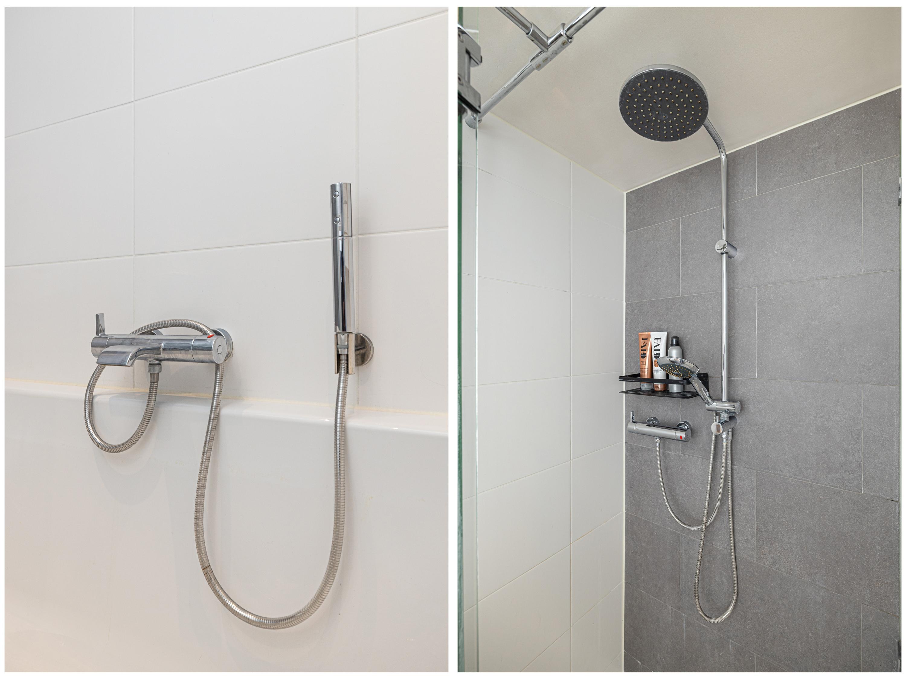 - Luxe en ruime badkamer met bad en douche.