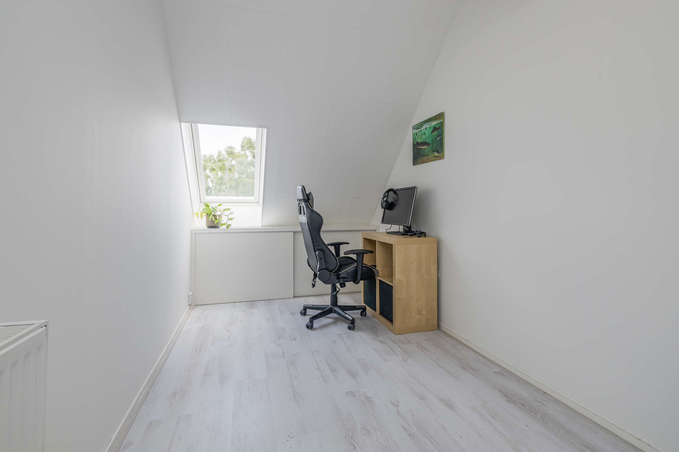 Overloop met opstelling CV-ketel en met toegang tot vertrekken. De woning beschikt over drie ruime slaapkamers, waarvan één slaapkamer aan de voorzijde (ca 12m2) en twee comfortabele slaapkamers aan de achterzijde van de woning welke zijn voorzien van Velux dakramen. Slaapkamer II is ca. 11,5m2 en slaapkamer III ca. 10,5m2. Er is een aansluiting voor de wasmachine en de wasdroger. Deze 2 kamers zijn ideaal als kinderkamer of studeerkamer.