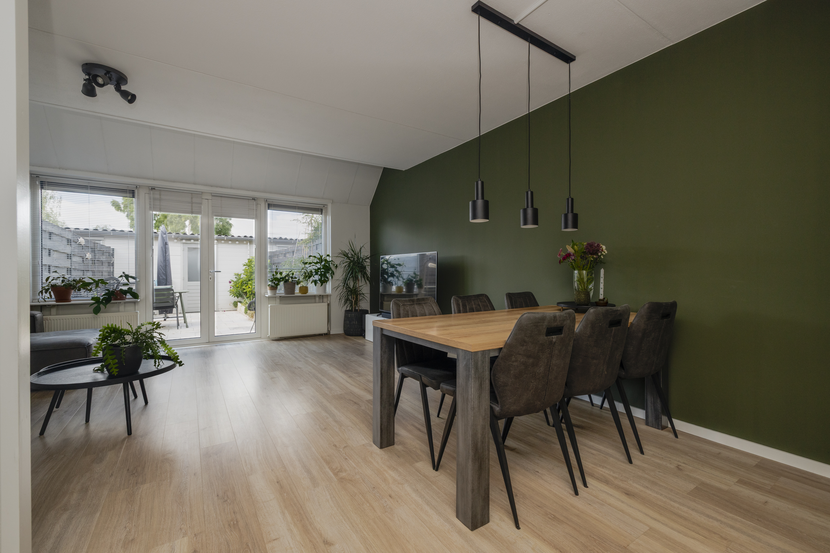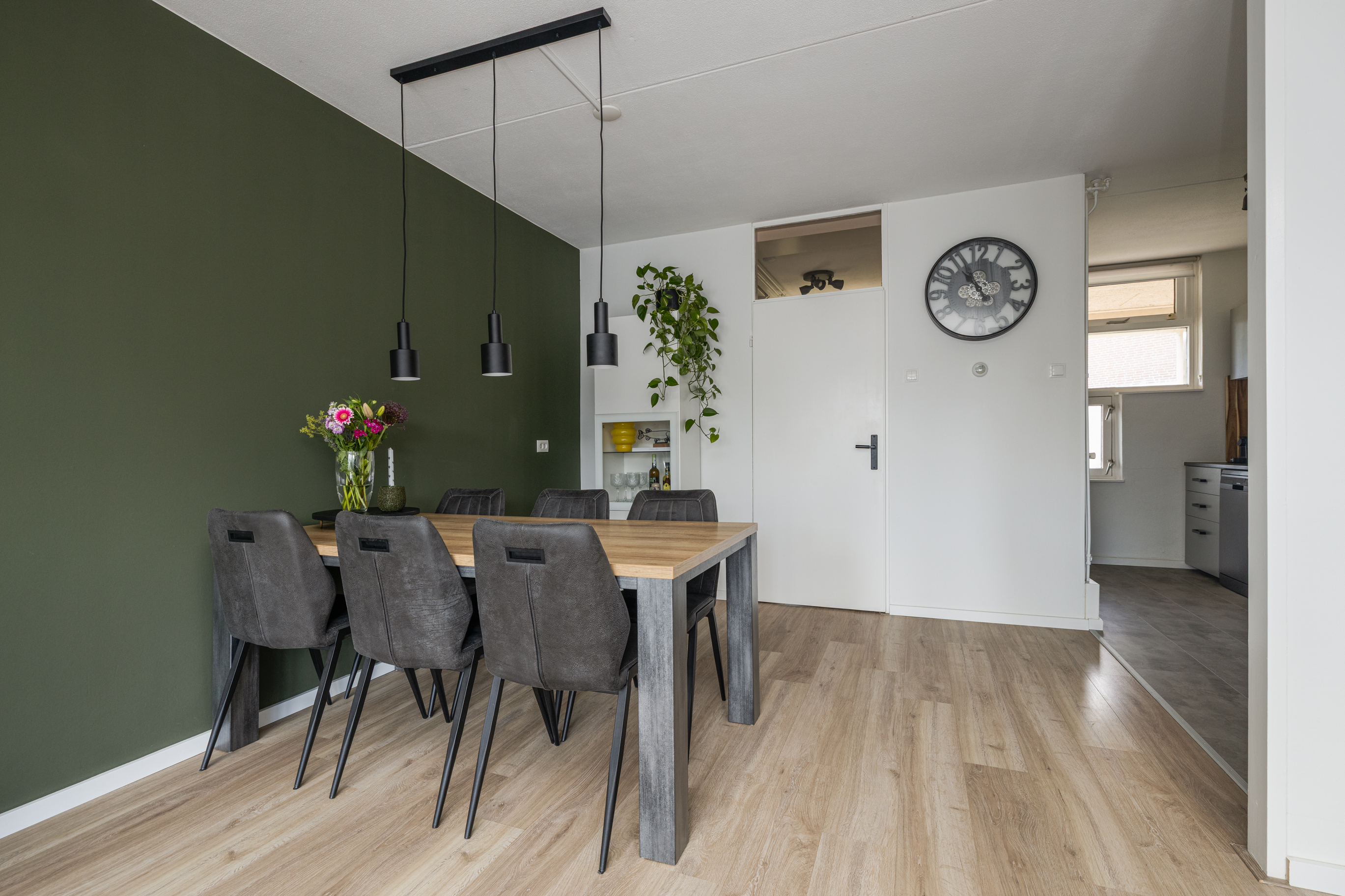 De gehele begane grond is voorzien van een lichte laminaatvloer.