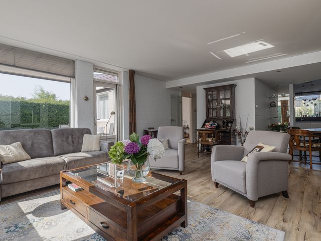 Via de entree heb je toegang tot alle vertrekken. Aan de achterzijde van de woning vind je de sfeervolle woonkamer van ca. 54m2, die dankzij de grote raampartijen heerlijk licht en uitnodigend aanvoelt. Vanuit de woonkamer stap je zo de achtertuin in. De achtertuin heeft een groot terras!. Het ruime terras in de achtertuin biedt door de oostelijke ligging en de lage bebouwing een ideale plek om te genieten van de zon.